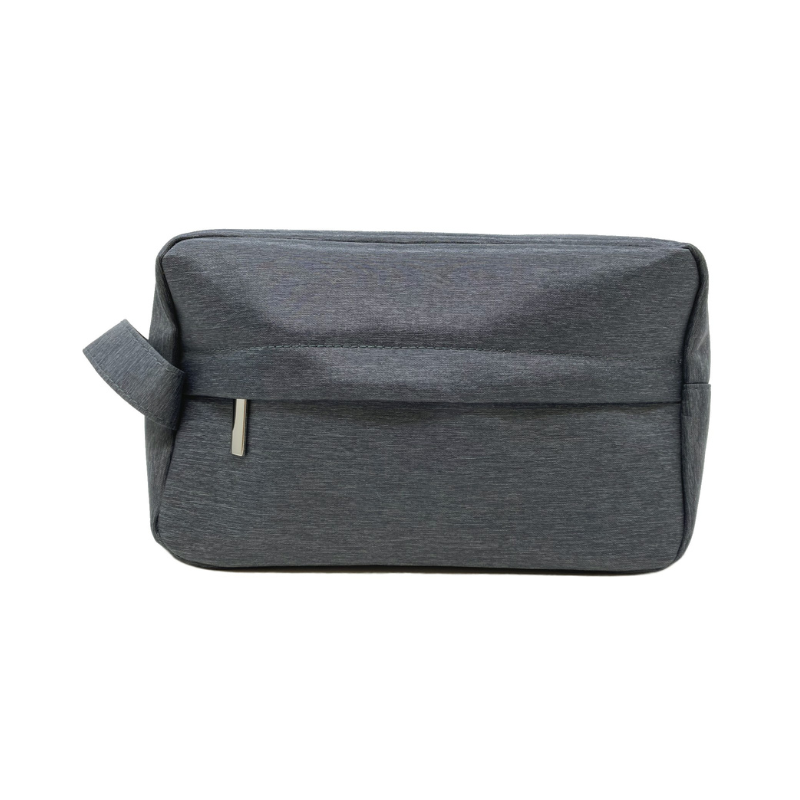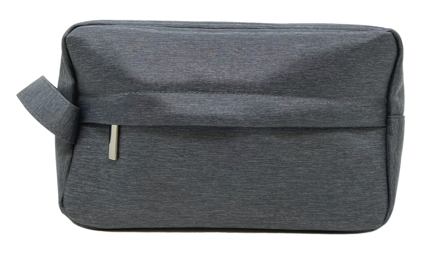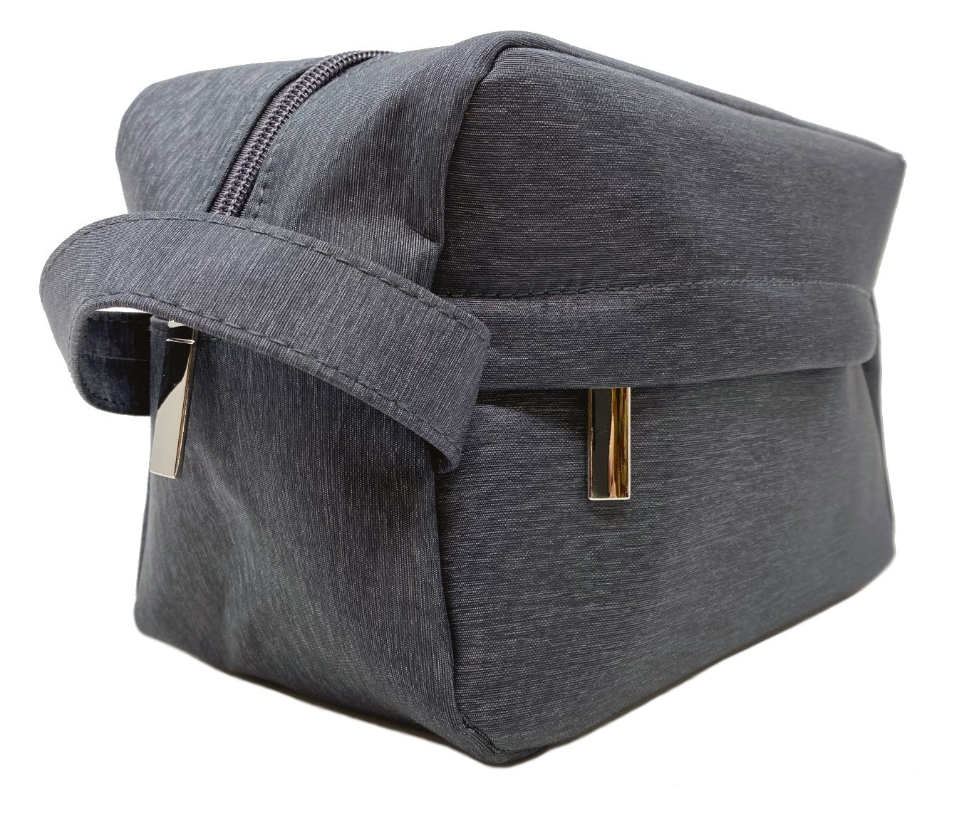 Heather Grey Toiletry Bag with Brown Vegan Leather Trim