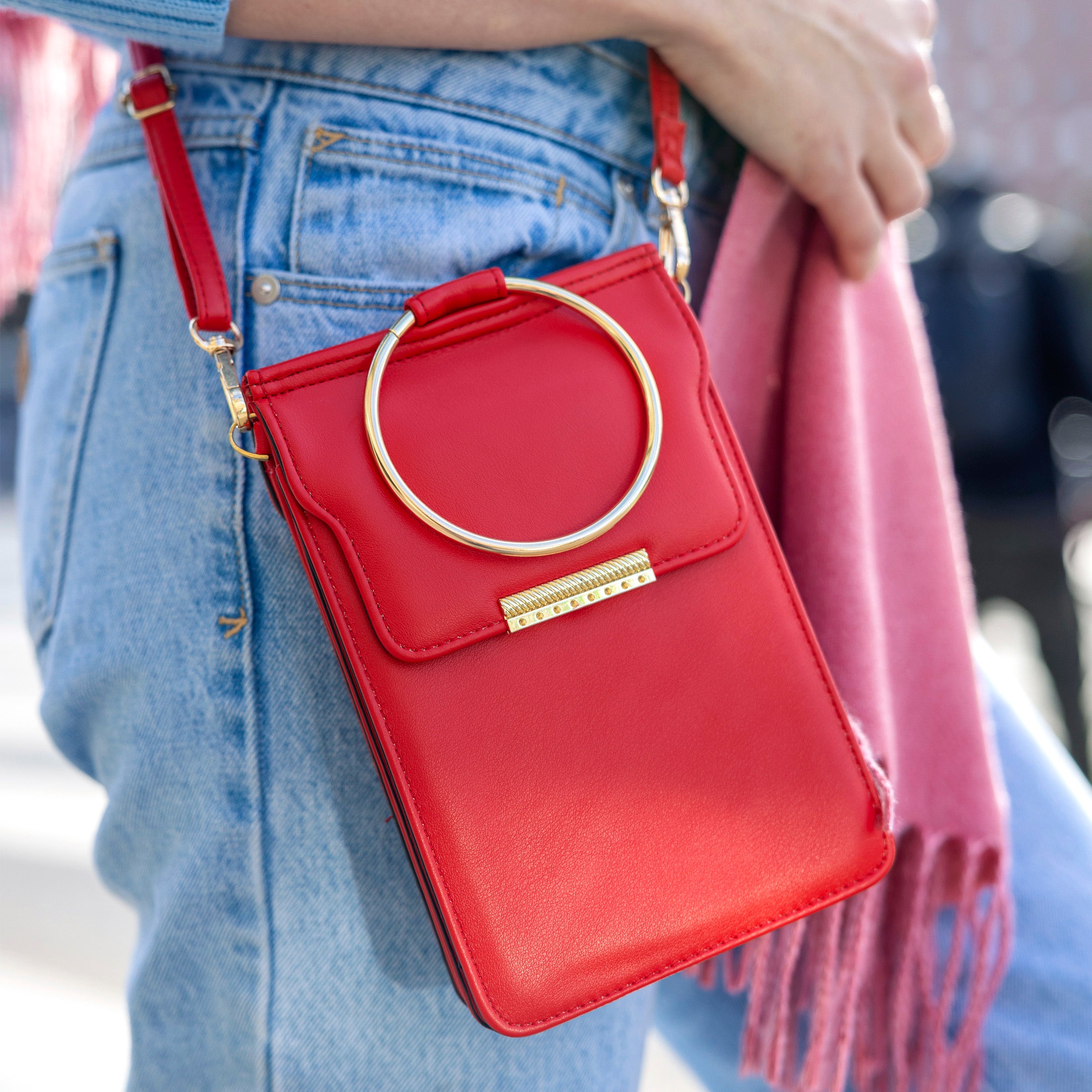 Phone Crossbody Bag Soft Leather - Red