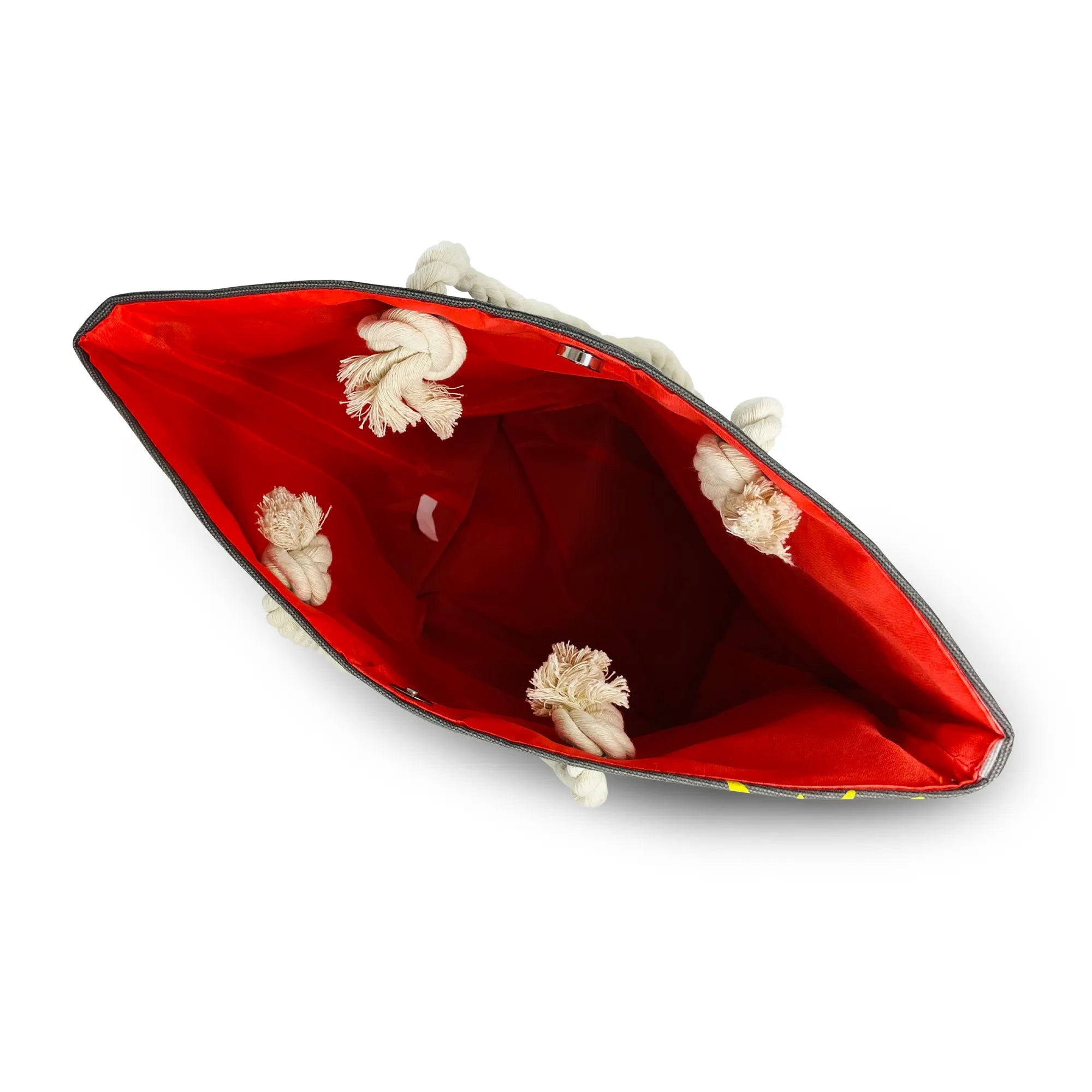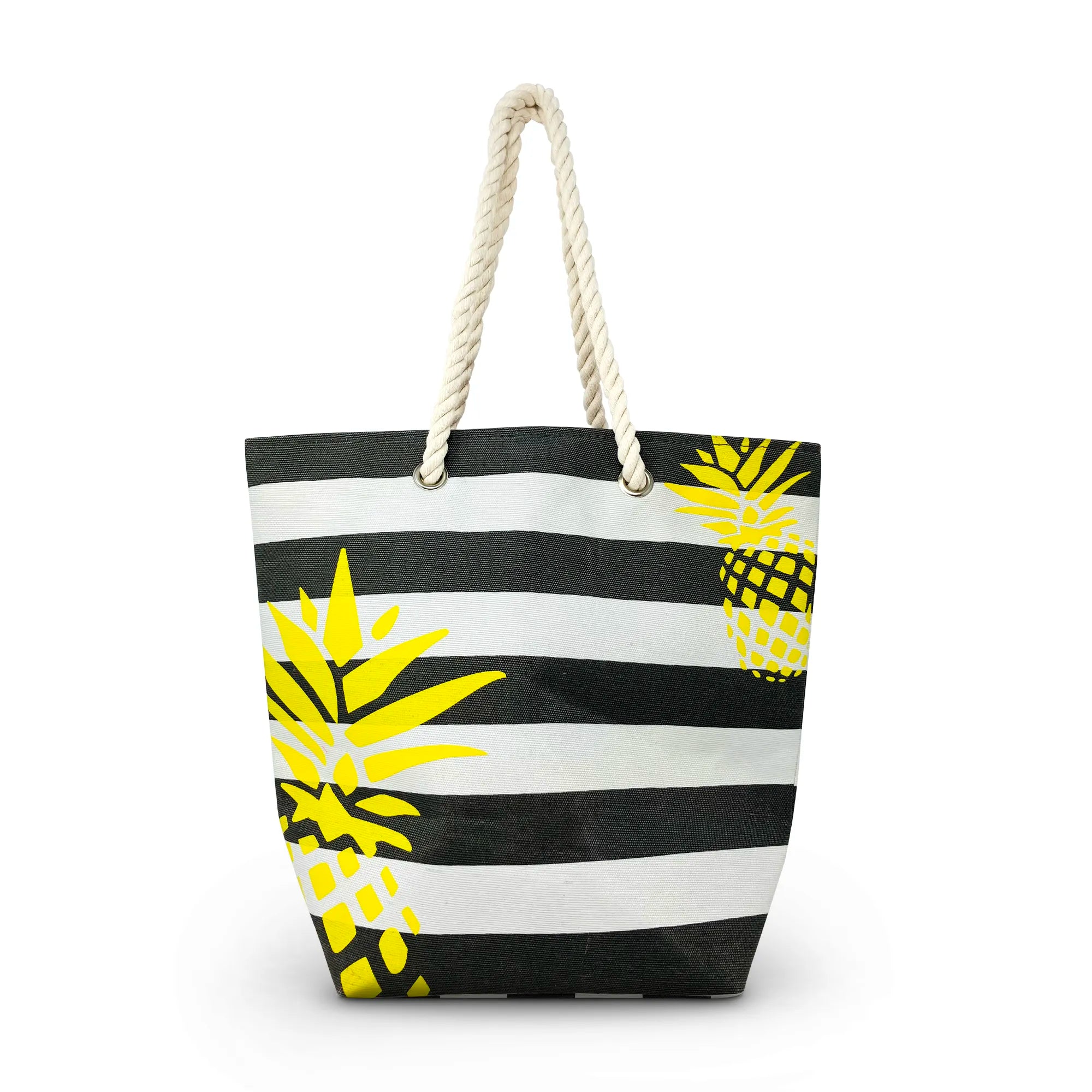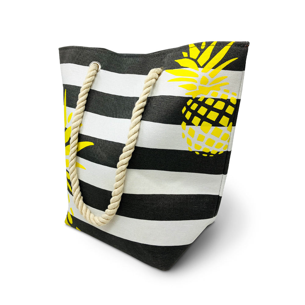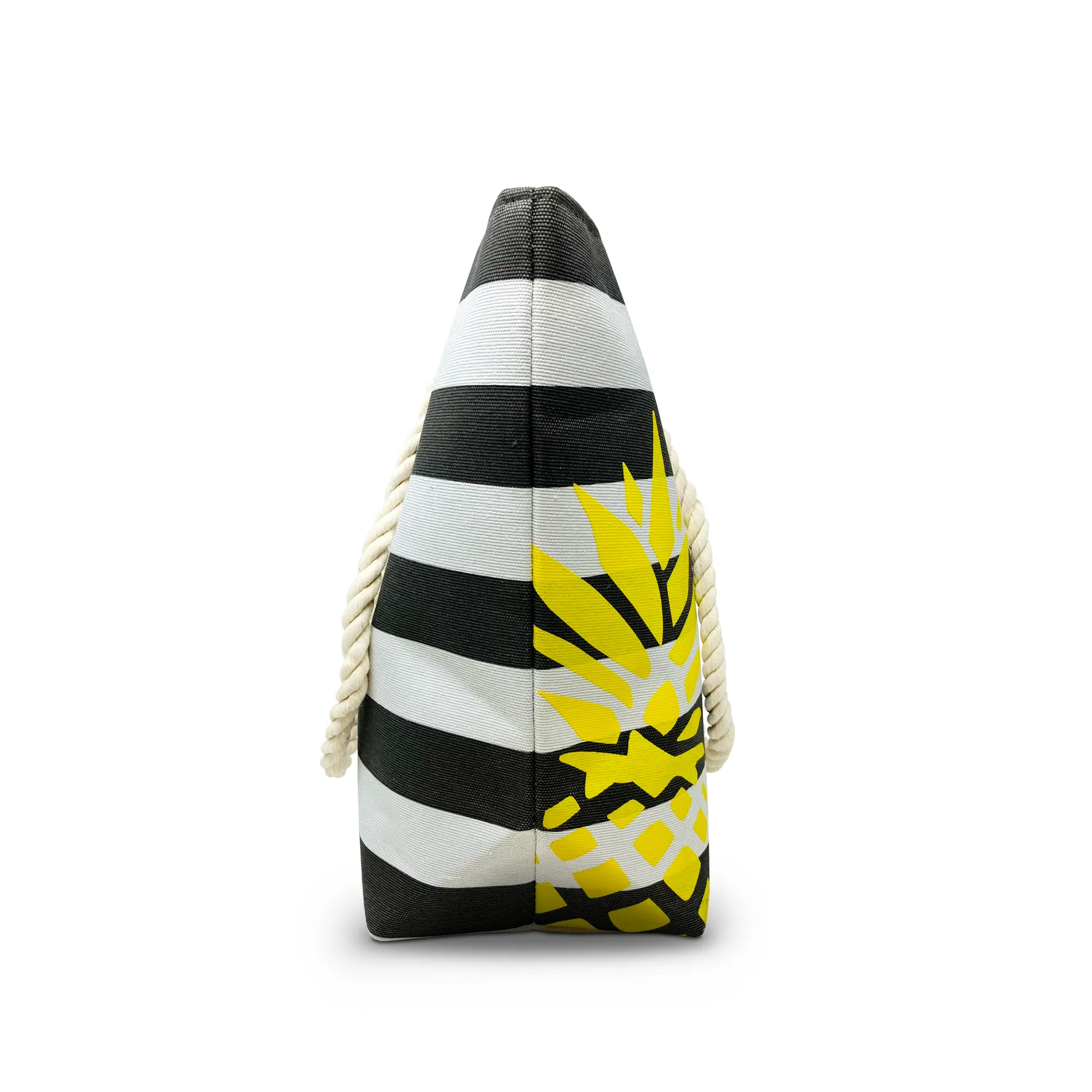 Combine style and functionality for your perfect beach getaway. Imagine strolling along the sandy shores with this vibrant tote by your side, its eye-catching pineapple pattern capturing the essence of tropical paradises. Designed to carry all your beach essentials with room to spare, this tote ensures you're fully equipped for a sun-soaked day of relaxation and fun.