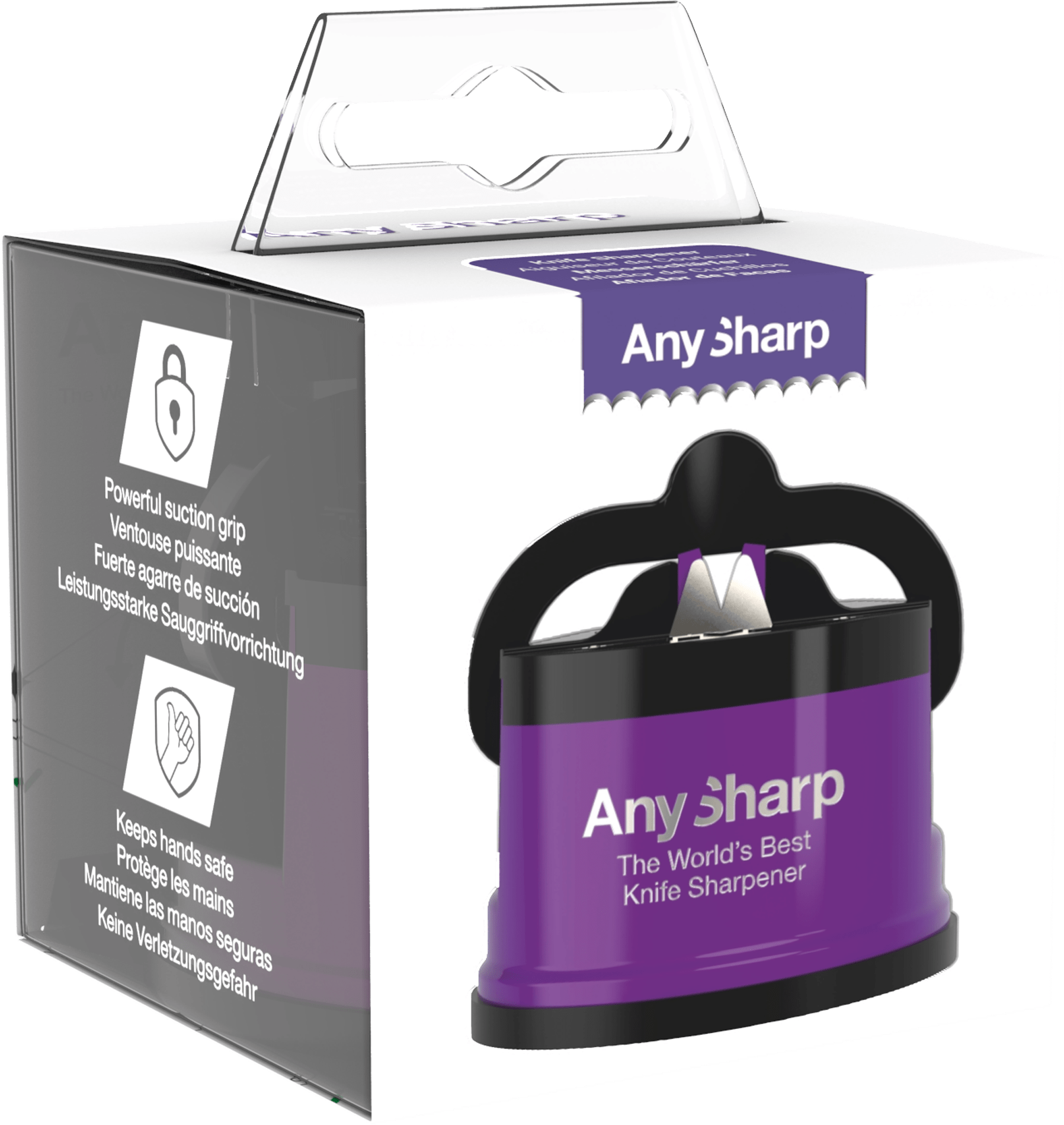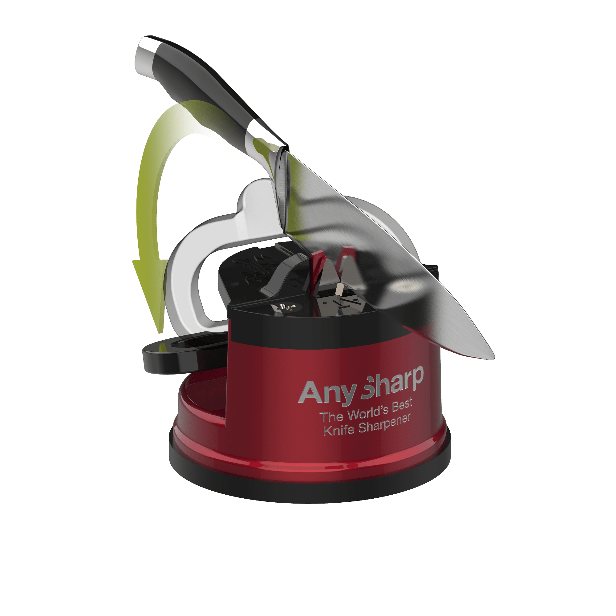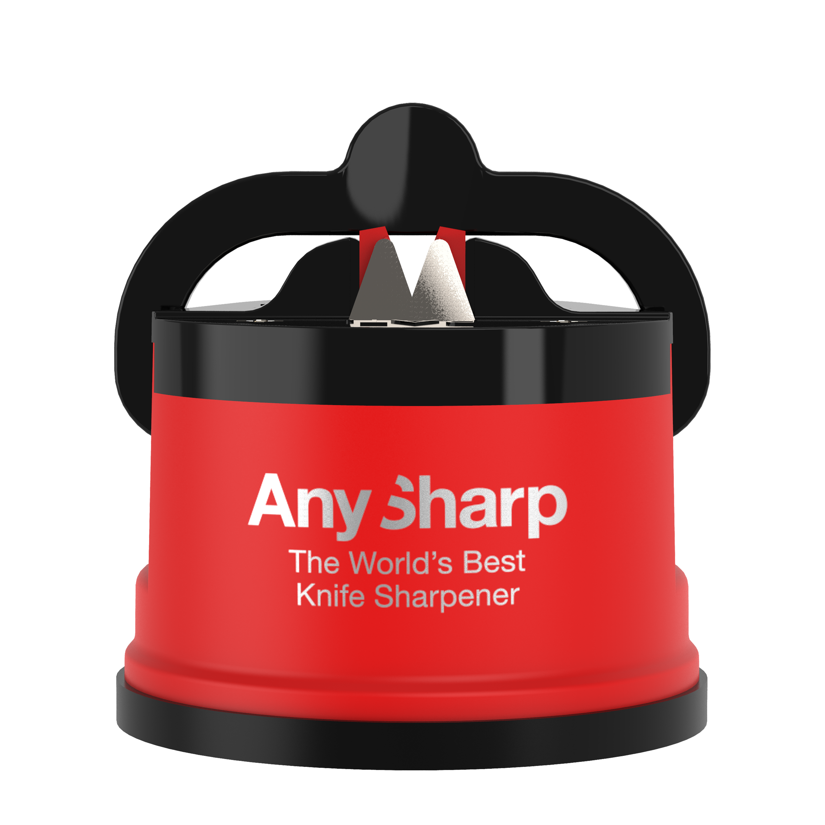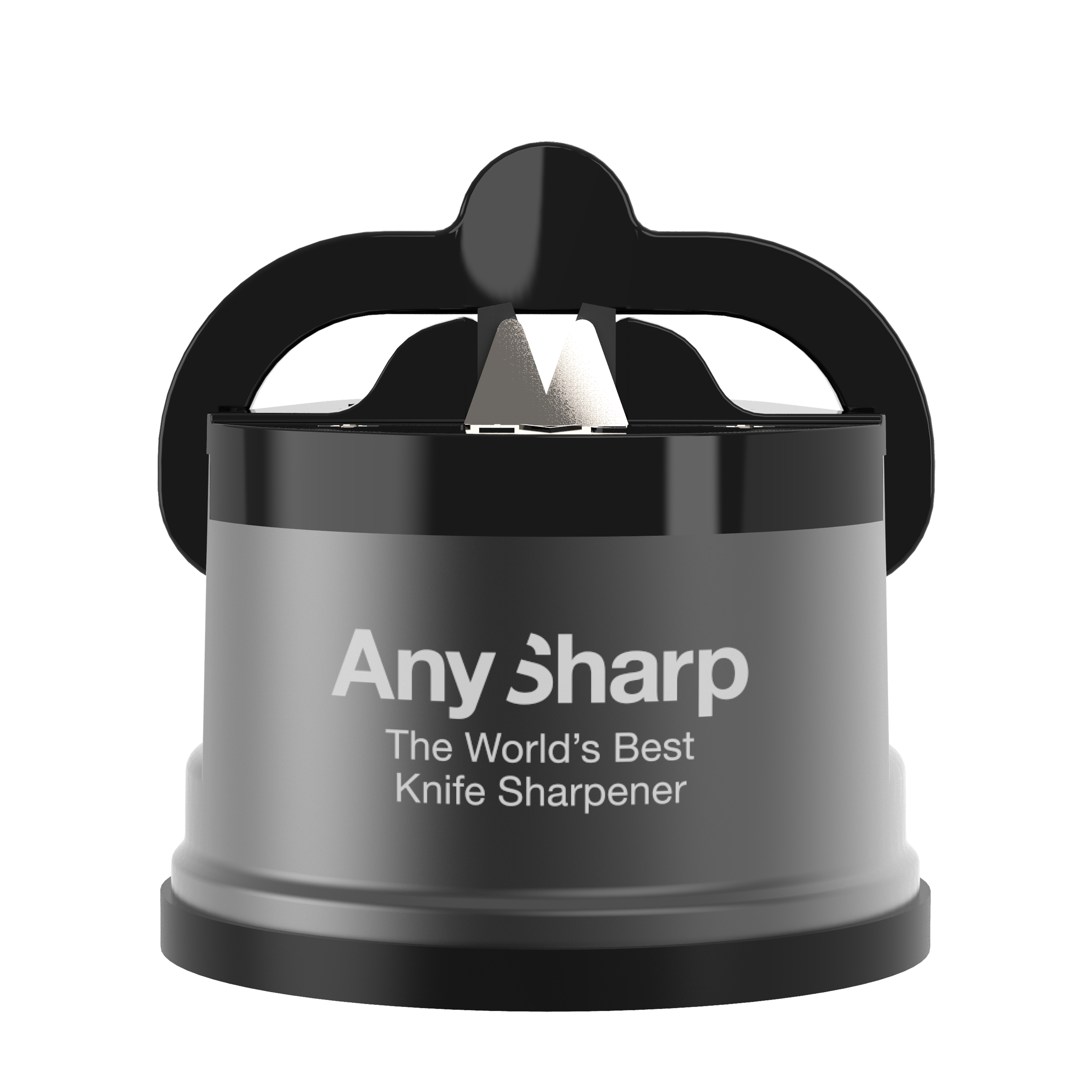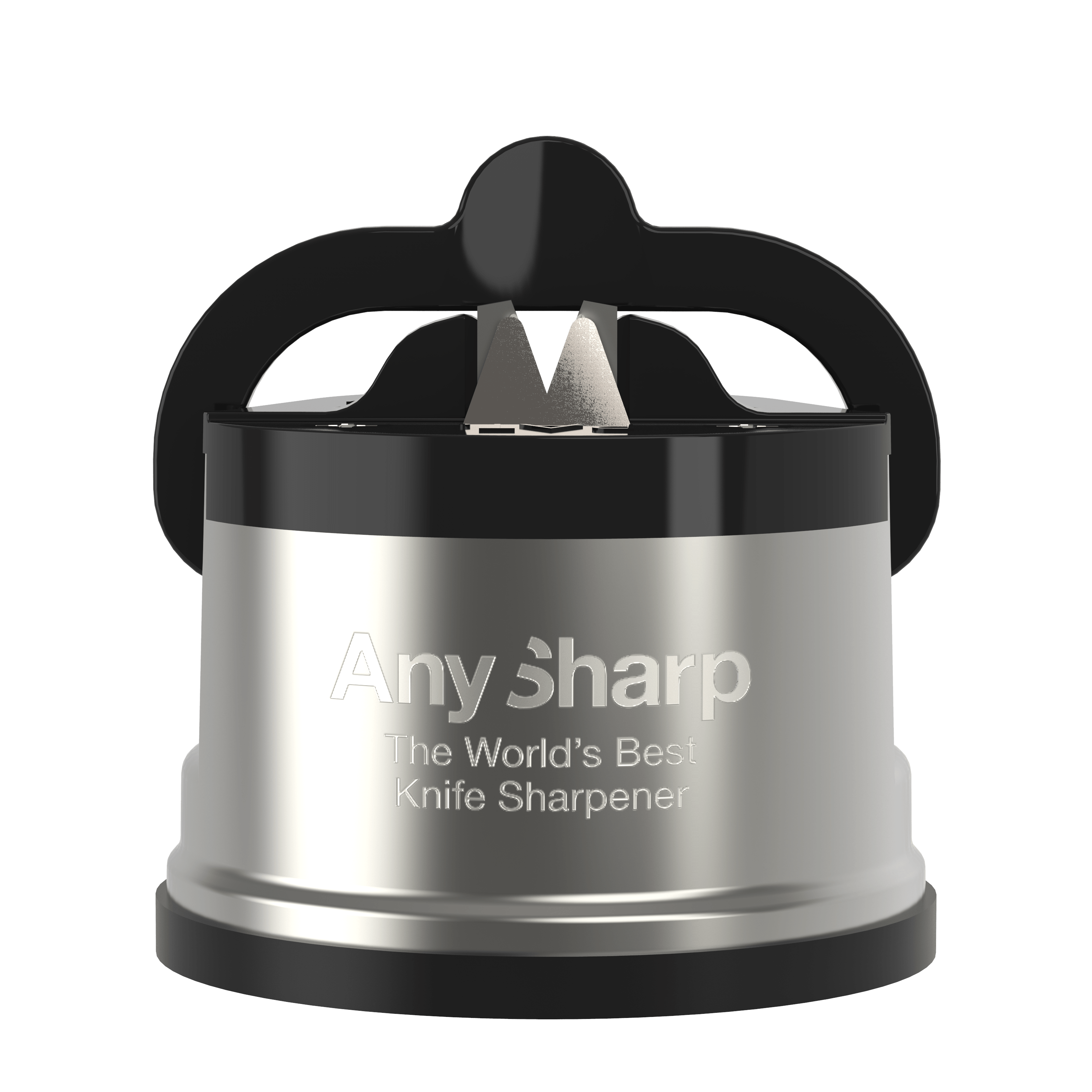 Known as the “World’s Best Knife Sharpener,” AnySharp Pro Knife Sharpener rejuvenates knives safely and hands-free. A few light strokes, and in seconds, the knife is sharp as new. The patented Power Grip suction cup base keeps the sharpener in place and the advanced diamond-honed Tungsten Carbide blades easily sharpen almost any knife. Professional-grade knife sharpening that helps make cooking easy and safe!