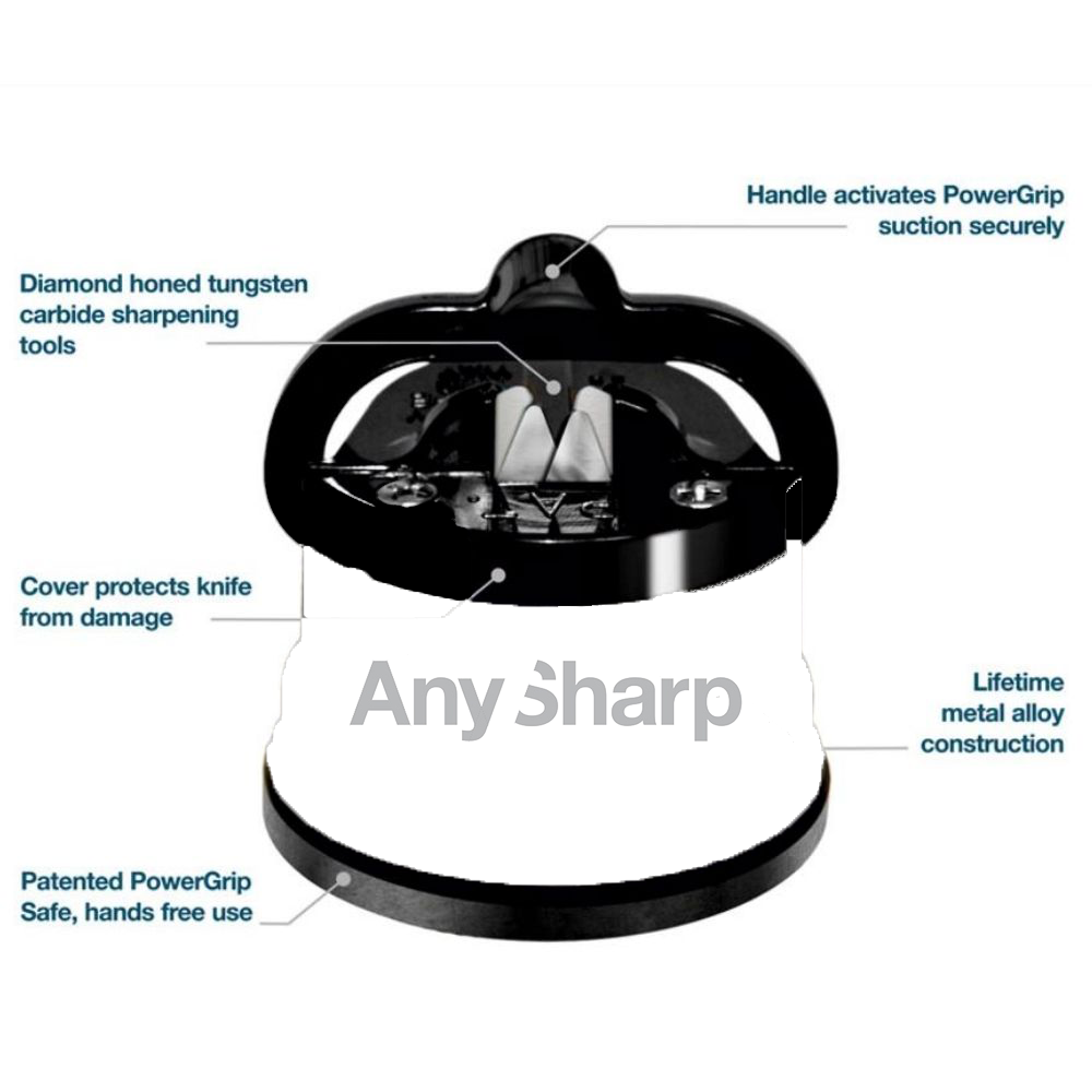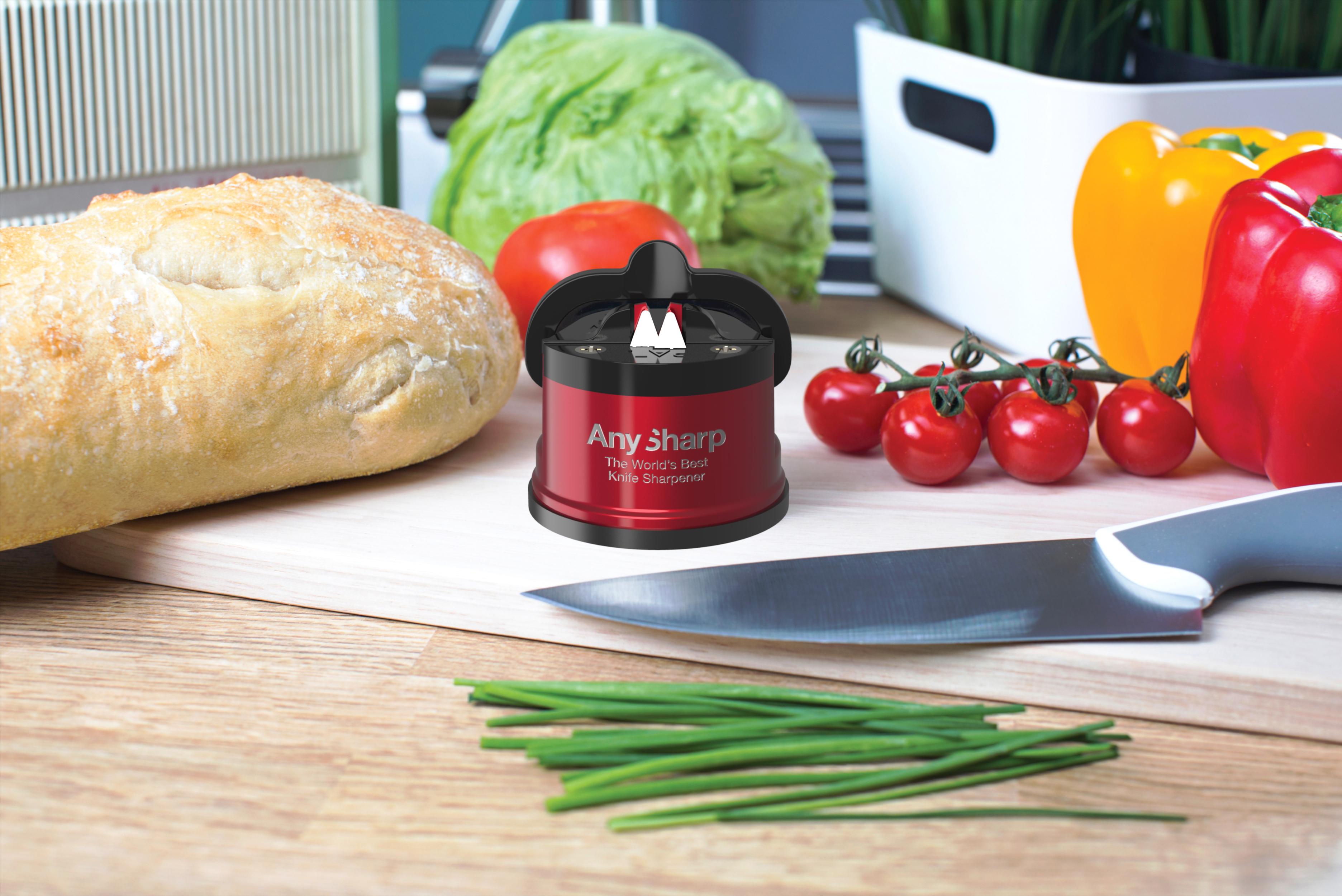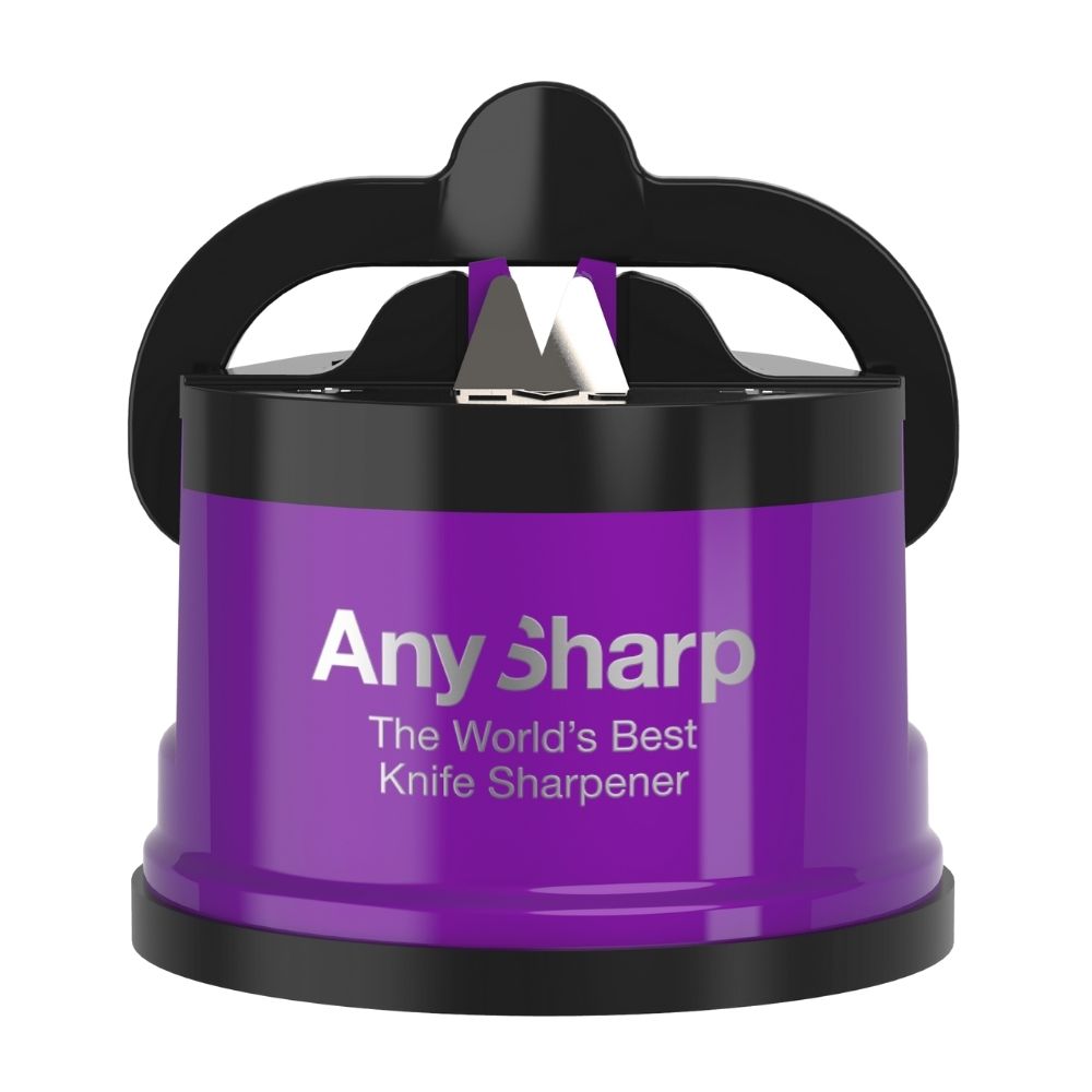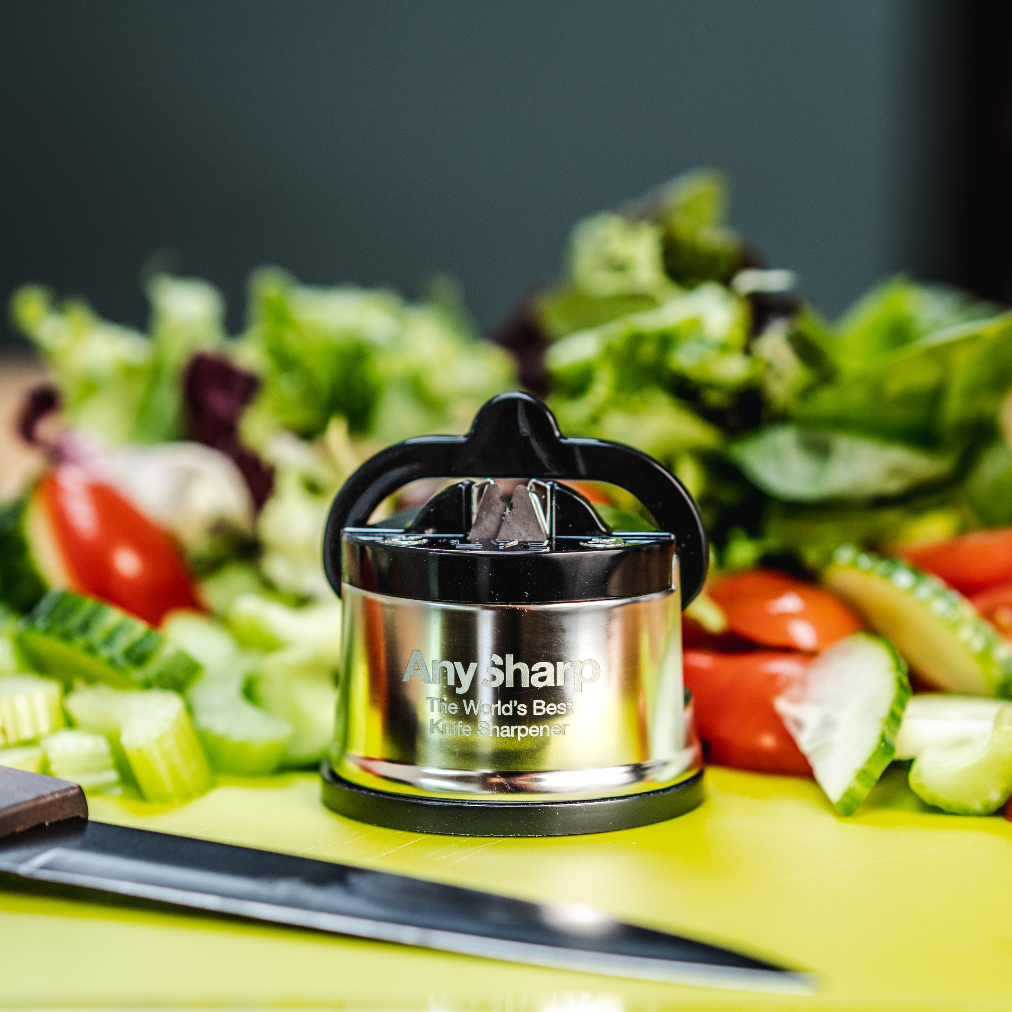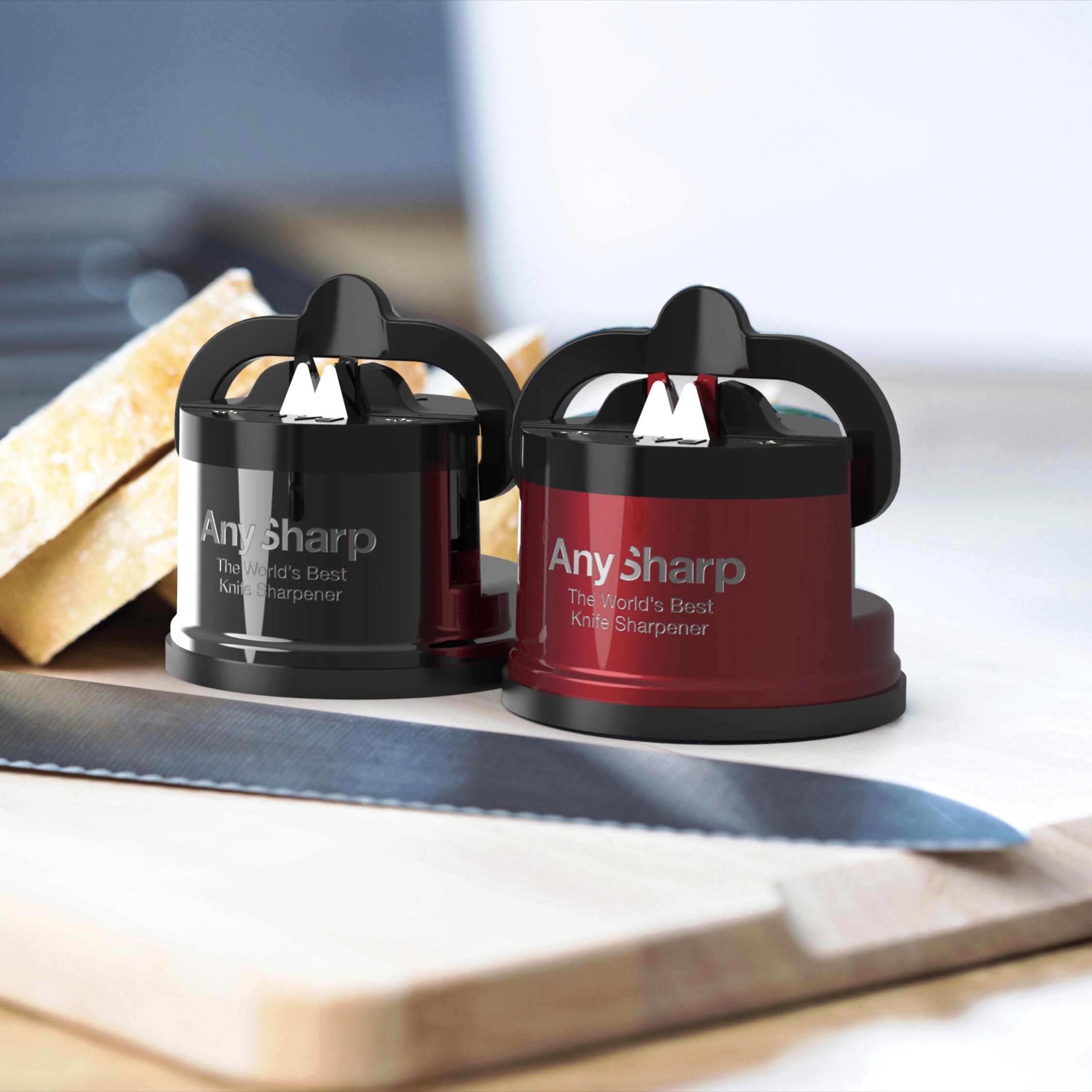 Known as the “World’s Best Knife Sharpener,” AnySharp Pro Knife Sharpener rejuvenates knives safely and hands-free. A few light strokes, and in seconds, the knife is sharp as new. The patented Power Grip suction cup base keeps the sharpener in place and the advanced diamond-honed Tungsten Carbide blades easily sharpen almost any knife. Professional-grade knife sharpening that helps make cooking easy and safe!