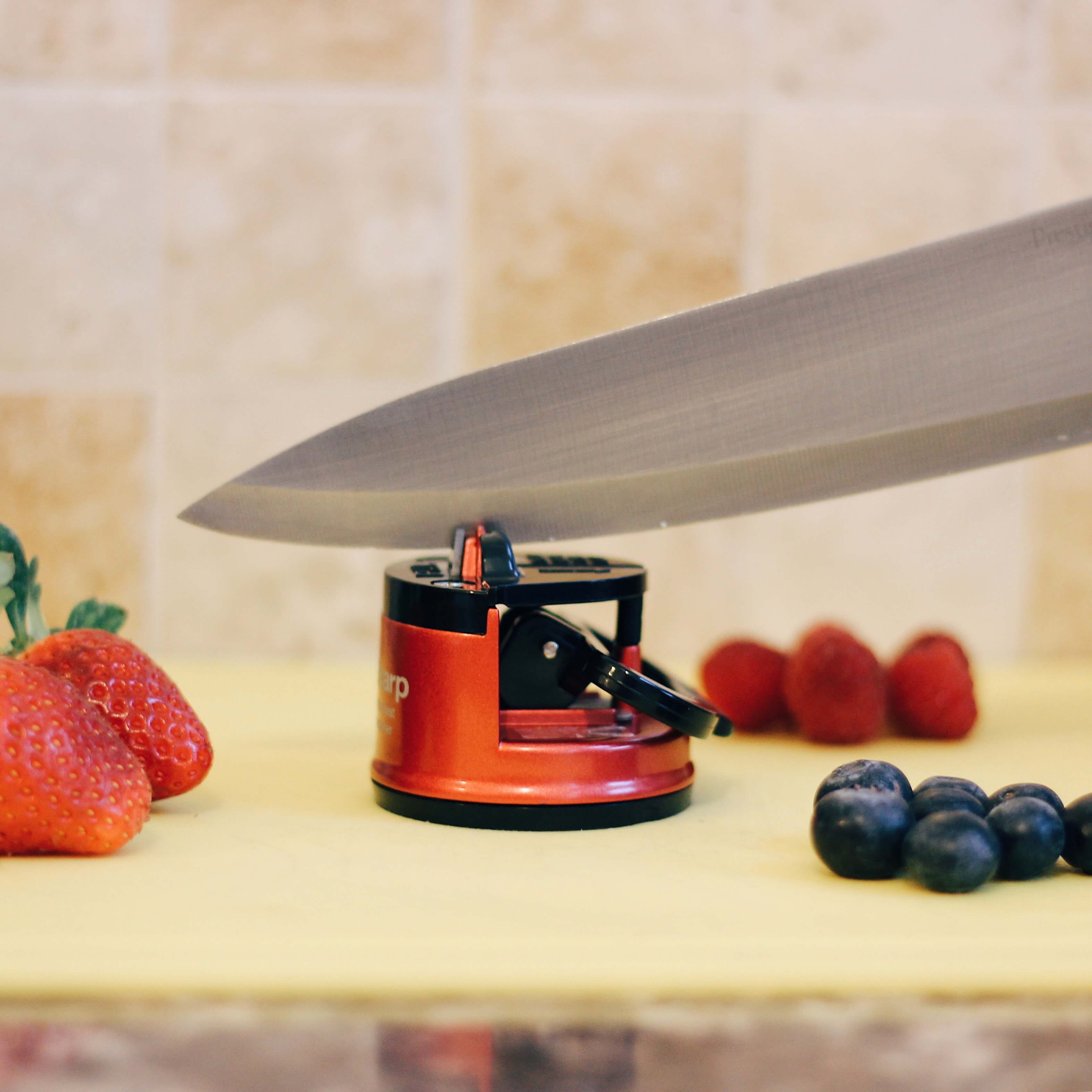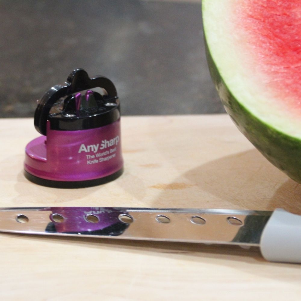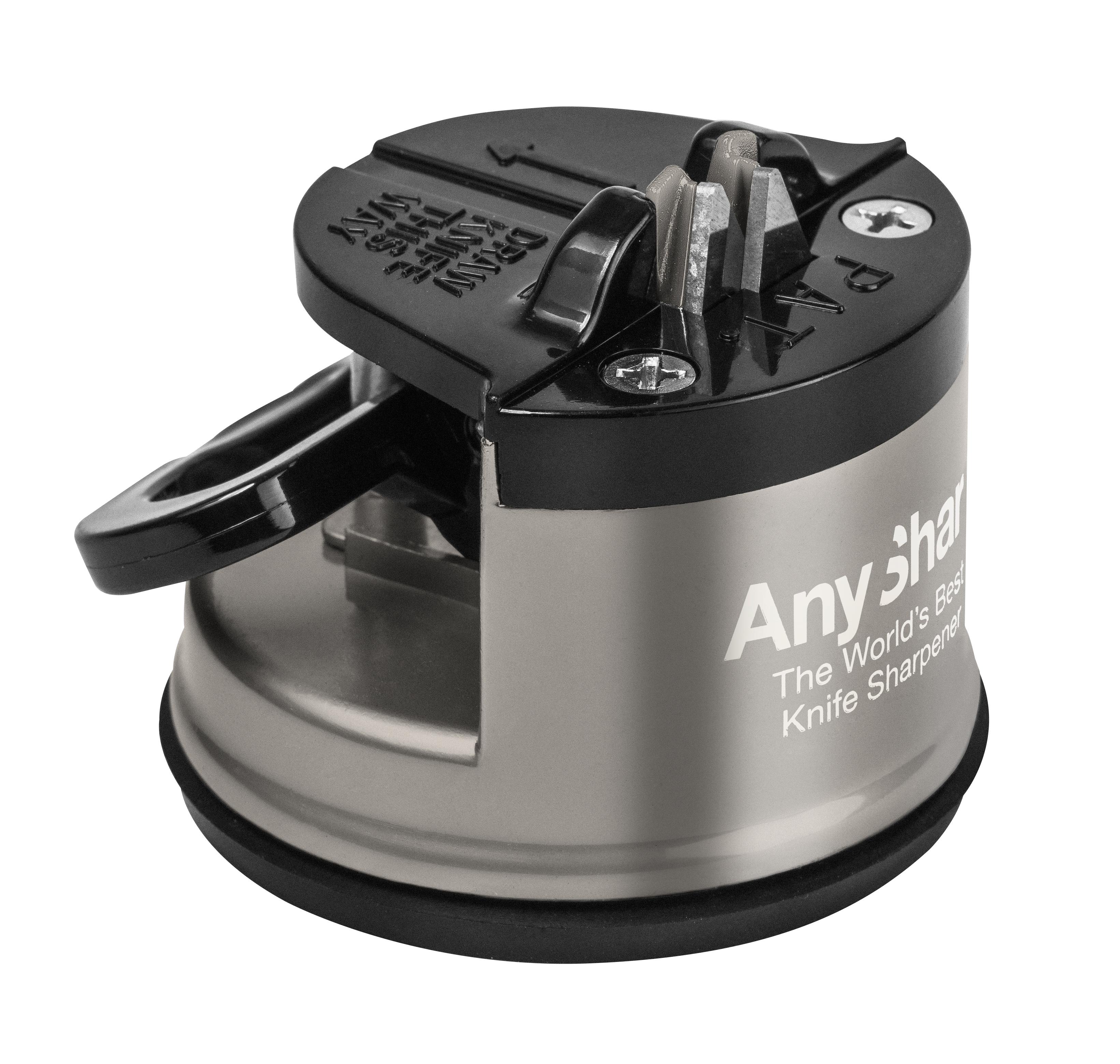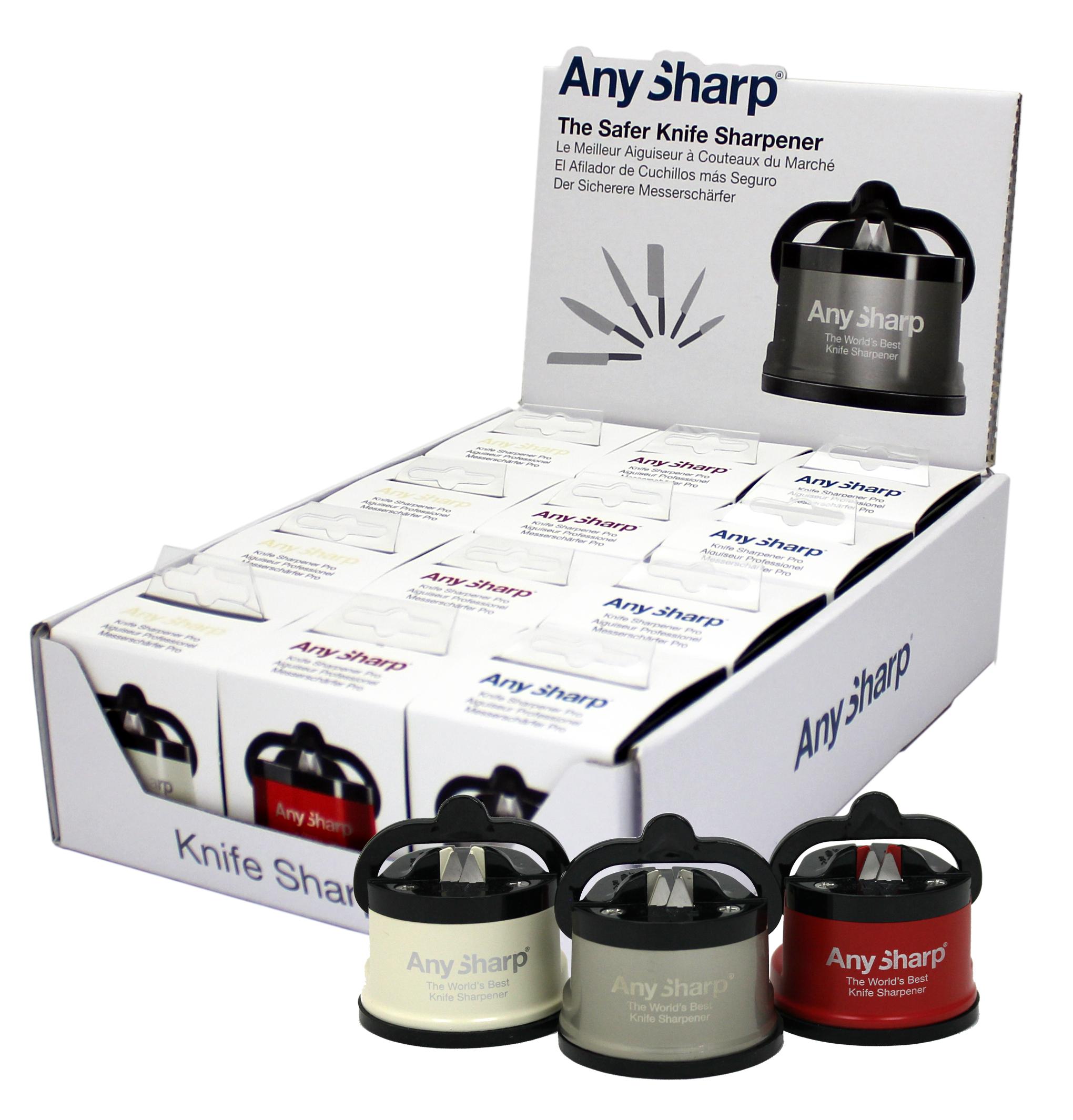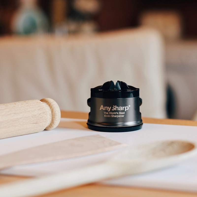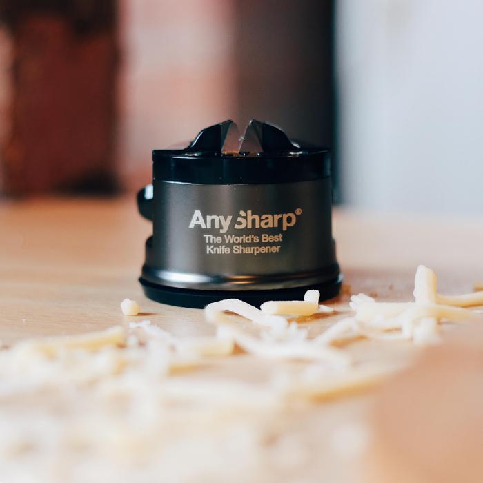 Known as the “World’s Best Knife Sharpener,” AnySharp Pro Knife Sharpener rejuvenates knives safely and hands-free. A few light strokes, and in seconds, the knife is sharp as new. The patented Power Grip suction cup base keeps the sharpener in place and the advanced diamond-honed Tungsten Carbide blades easily sharpen almost any knife. Professional-grade knife sharpening that helps make cooking easy and safe!