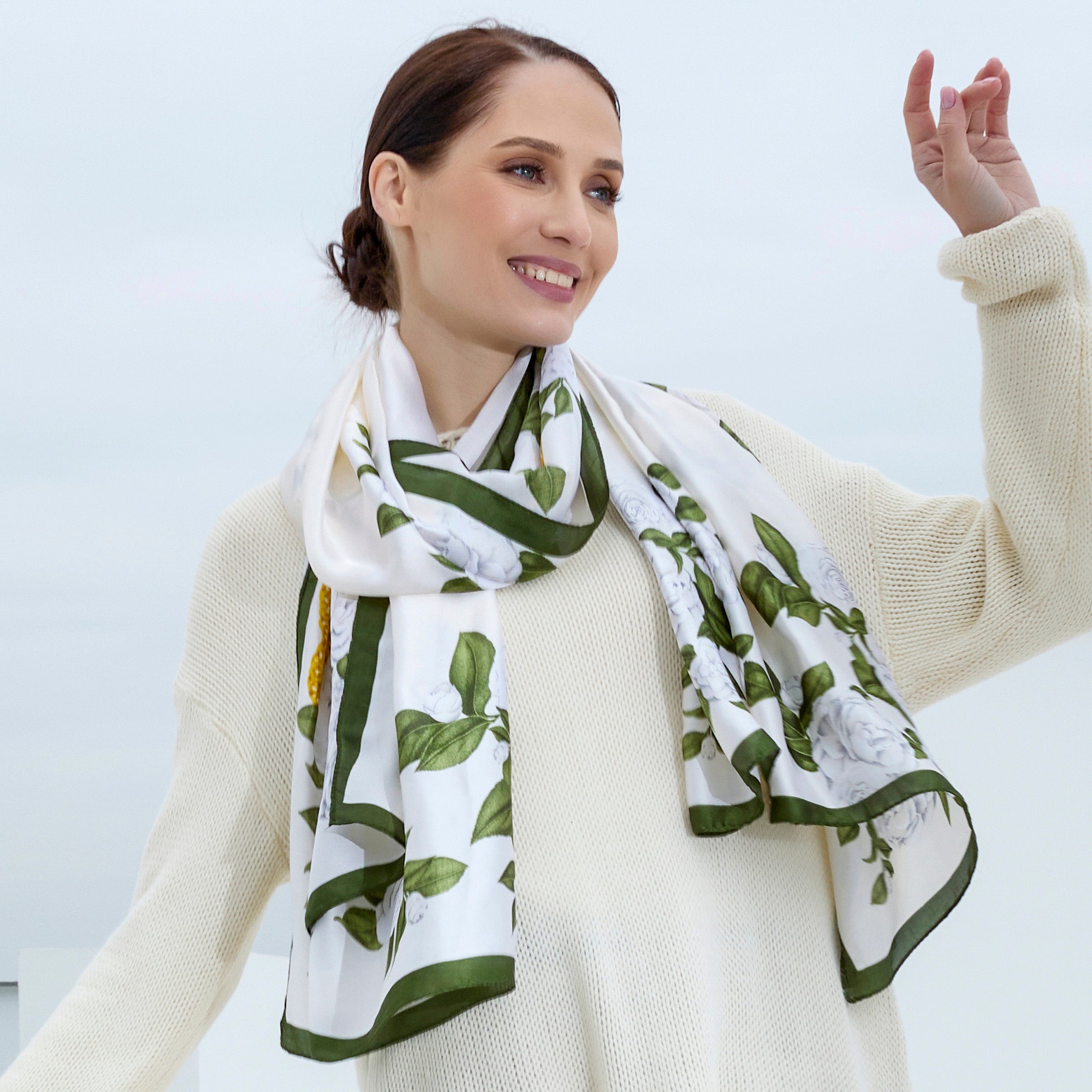 The stylish, unique pattern combined with a lightweight feel and soft texture gives this scarf an attractive and luxe touch. With so many additional ways to wear it, including as an accessory tied to your handbag, as a hair wrap, or wrapped around your neck, this piece is as ultra-versatile as it is fashionable.
