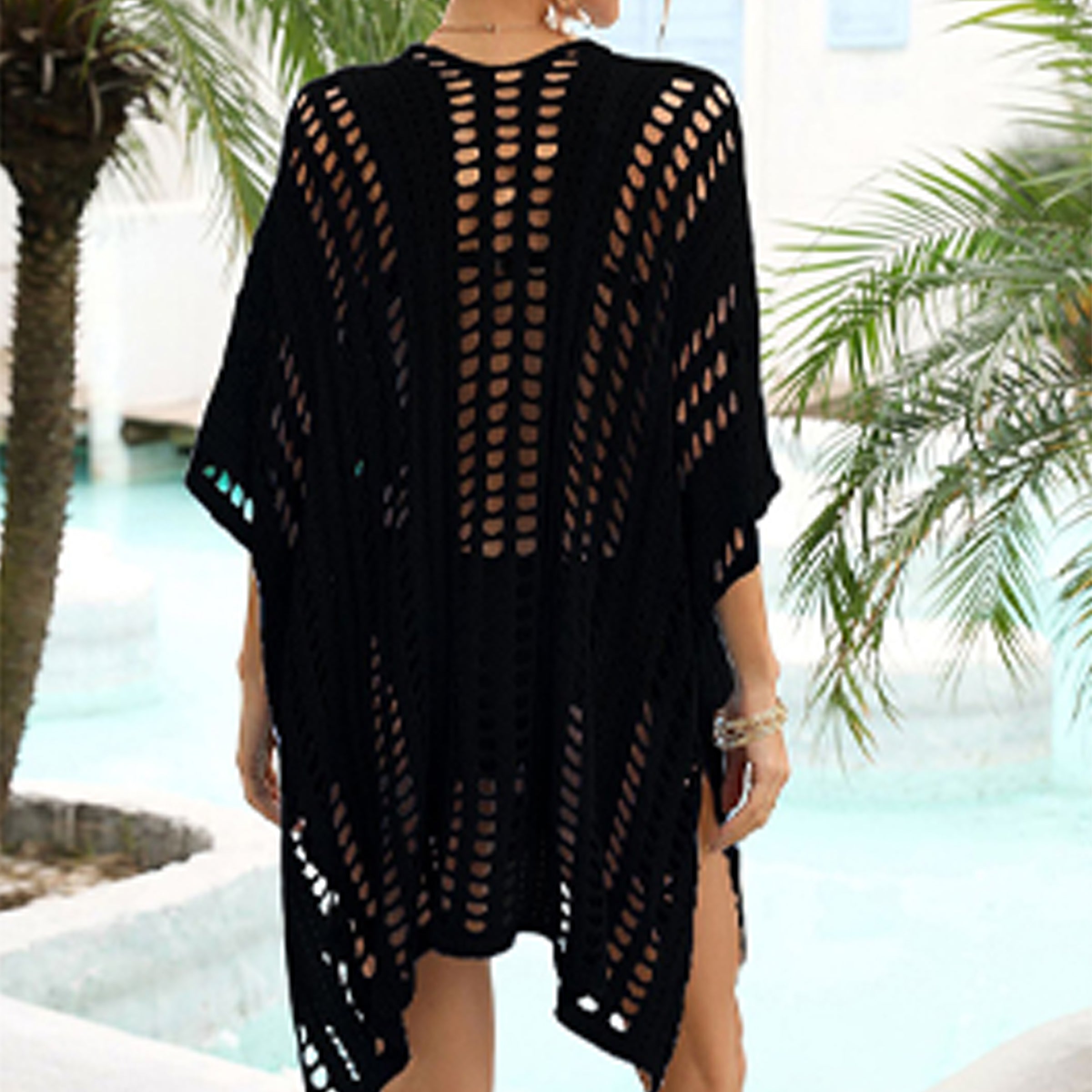 Drape yourself in seaside sophistication with our Black Crochet Swim Cover Up. Crafted with delicate crochet detailing, its lightweight design provides the perfect blend of comfort and style.