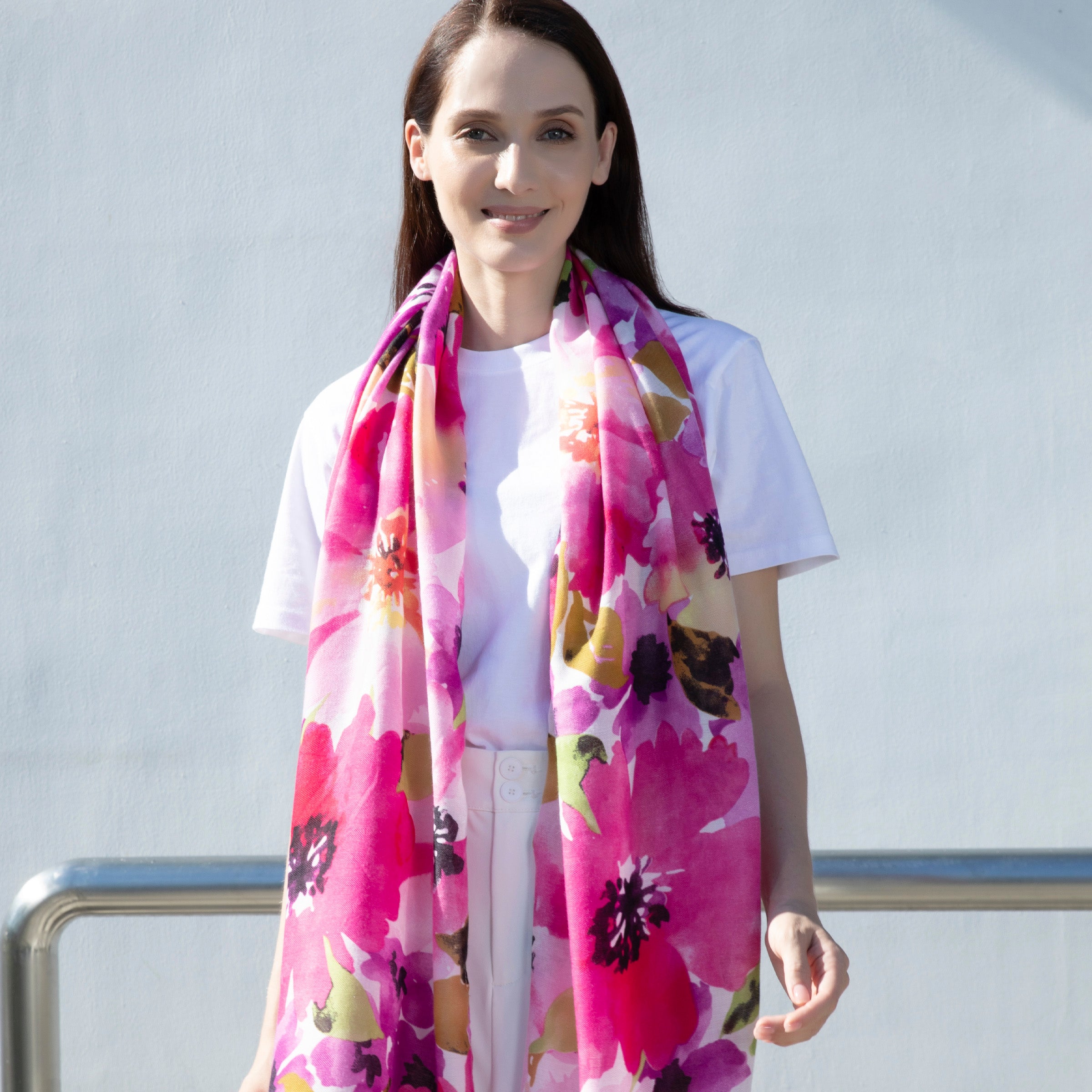The Flora - Lightweight Cotton Scarf with Tassels- Pink