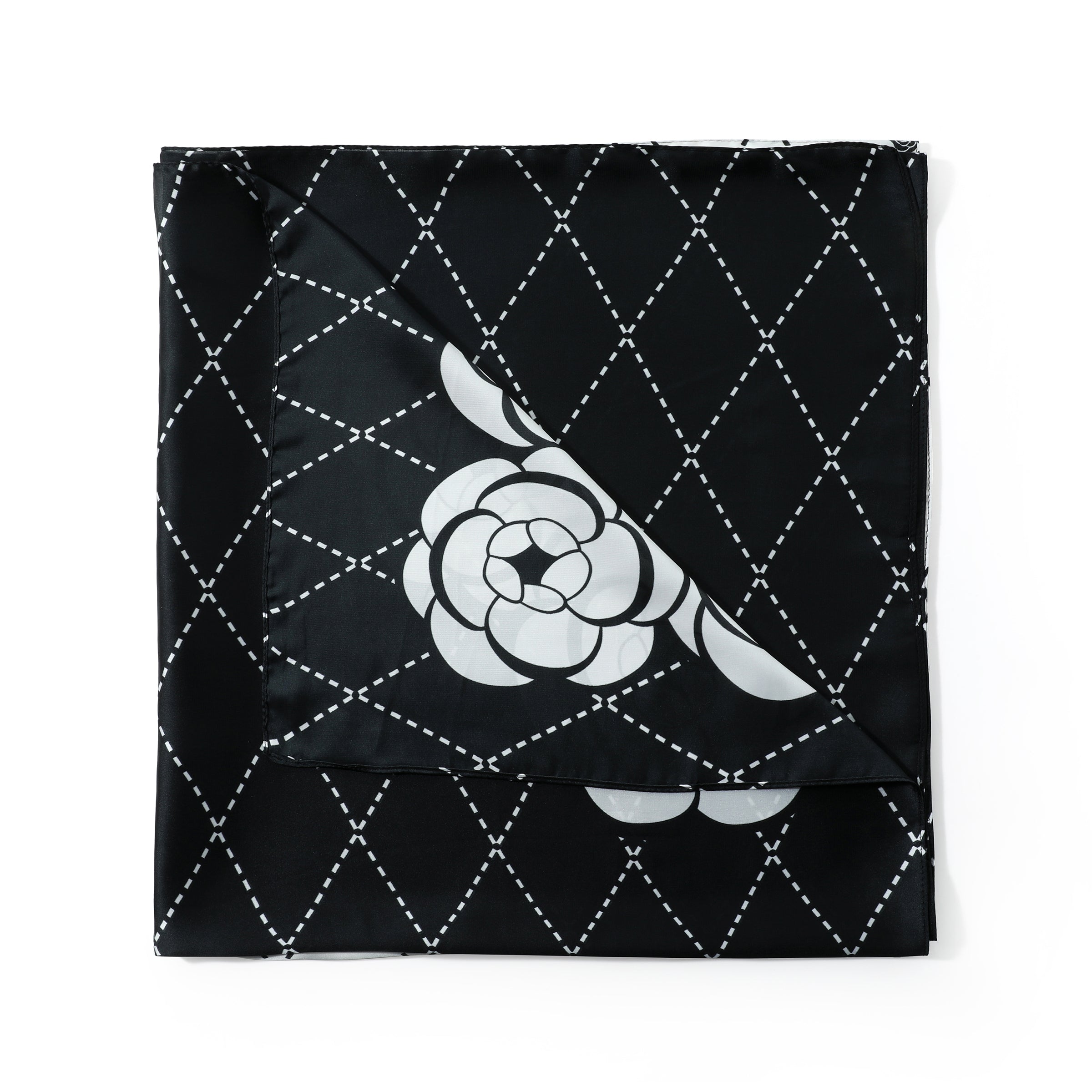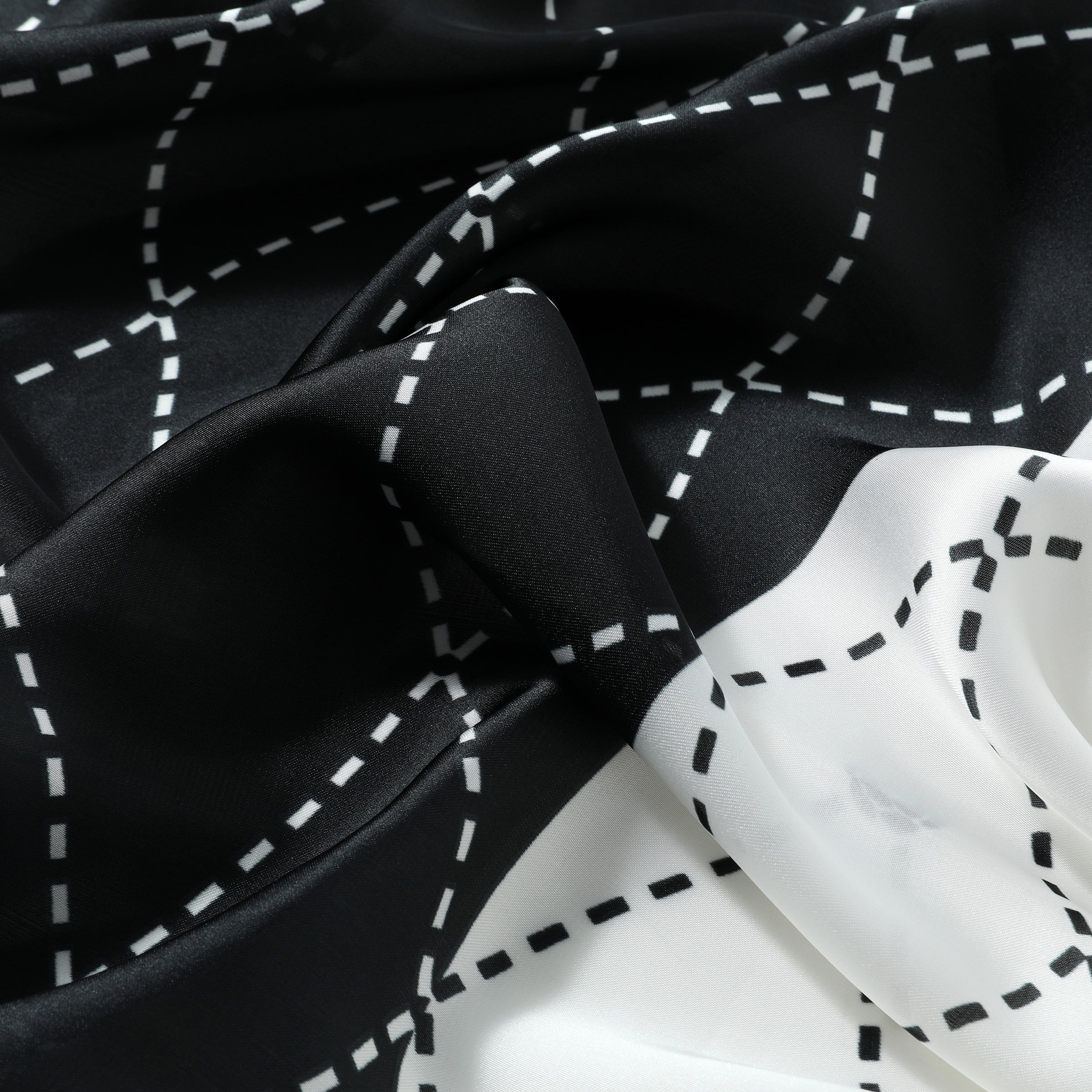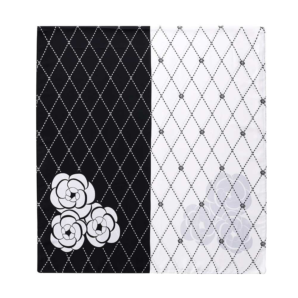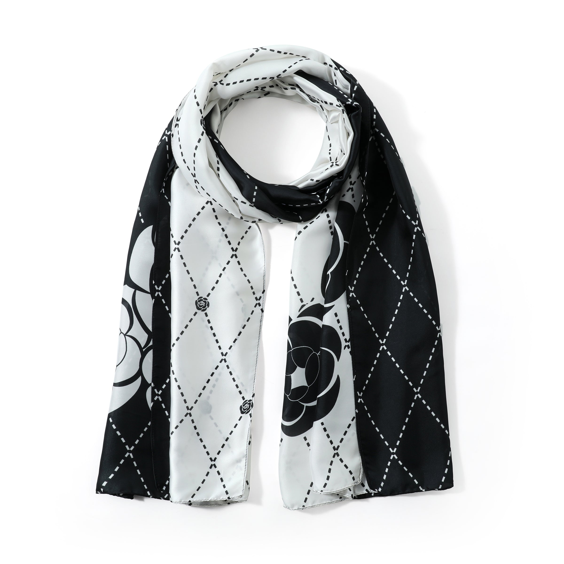 This half black and half white faux silk scarf with flower detail has an art deco feel and adds flair under a coat or as an accessory to almost any outfit in your wardrobe. Polyester fabric makes it easy to clean and care for.