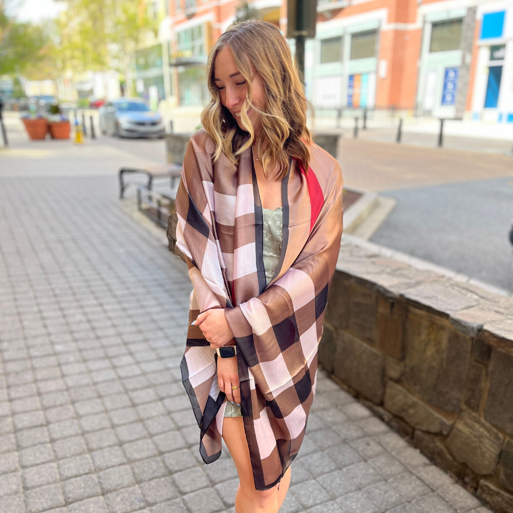 Checkered & Trimmed Ultrasoft Lightweight Scarf