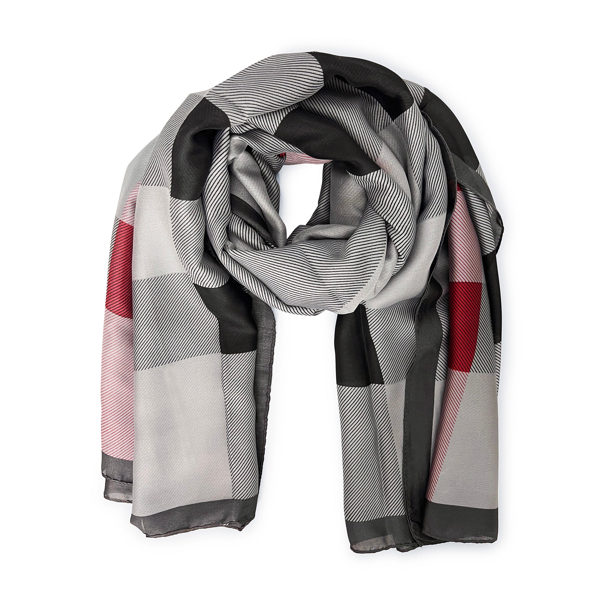 Checkered & Trimmed Ultrasoft Lightweight Scarf