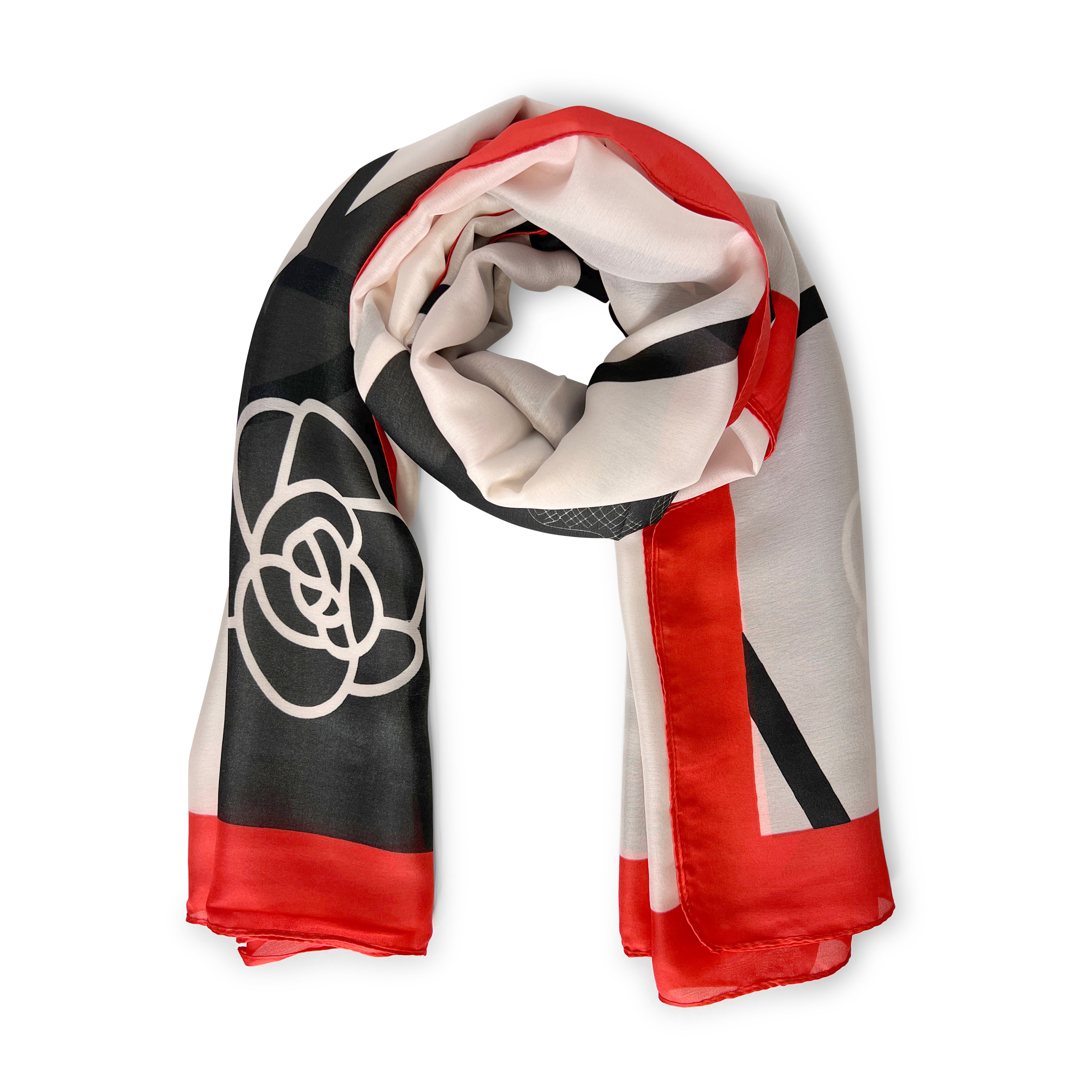This is one of our classic scarves with beautifully etched roses in colors that go with just about any outfit. Soft, luxurious and made with love.