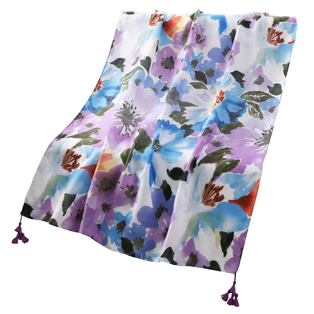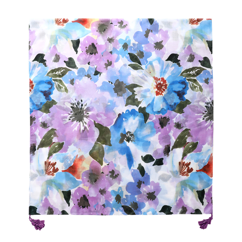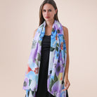 Petal Drift Lightweight Cotton Scarf with Tassels - Blue