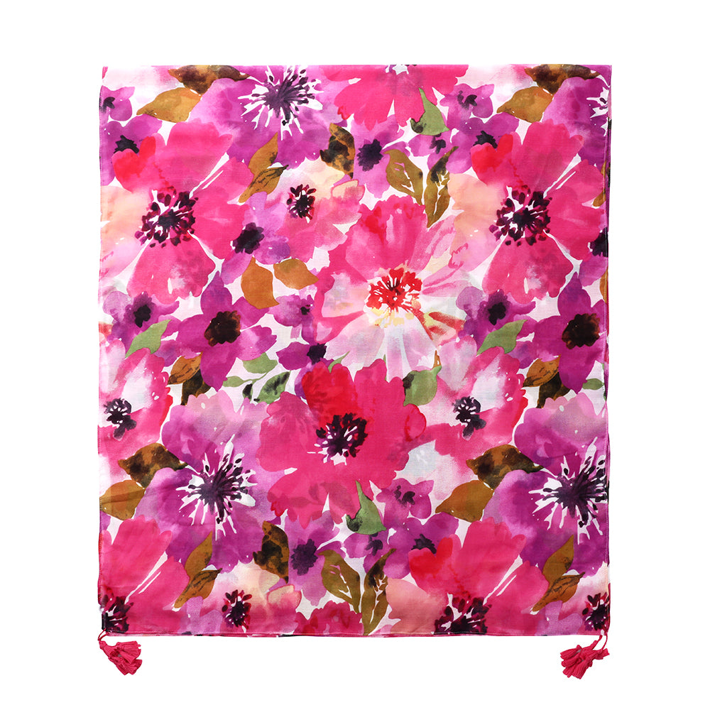 The Flora - Lightweight Cotton Scarf with Tassels- Pink