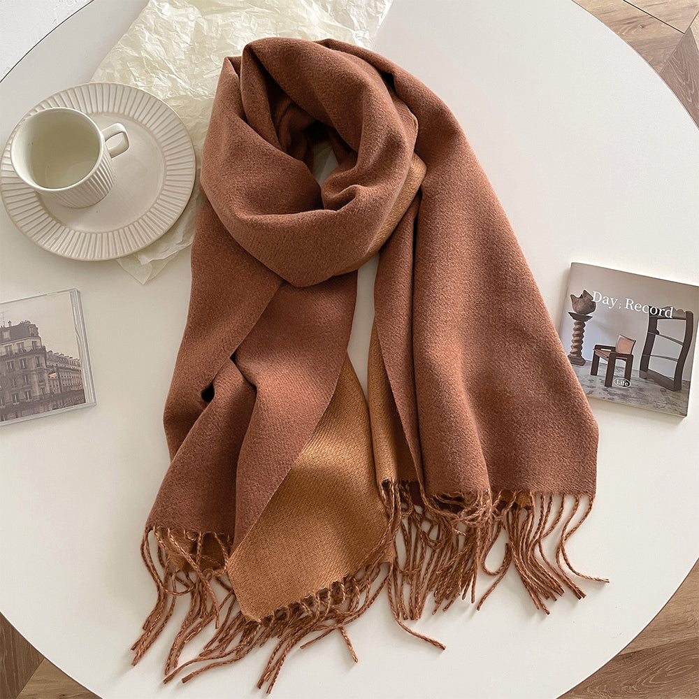 Wrap yourself in timeless elegance with our reversible pashmina scarf, the must-have accessory for luxury lovers and fashion-forward individuals looking to elevate their style. Crafted from a soft viscose and polyester blend, this scarf offers the plush feel of cashmere, ensuring warmth and comfort without sacrificing style. Whether you're strolling through the city streets or attending an evening soiree, the ultrasoft texture of this scarf will keep you warm and cozy.