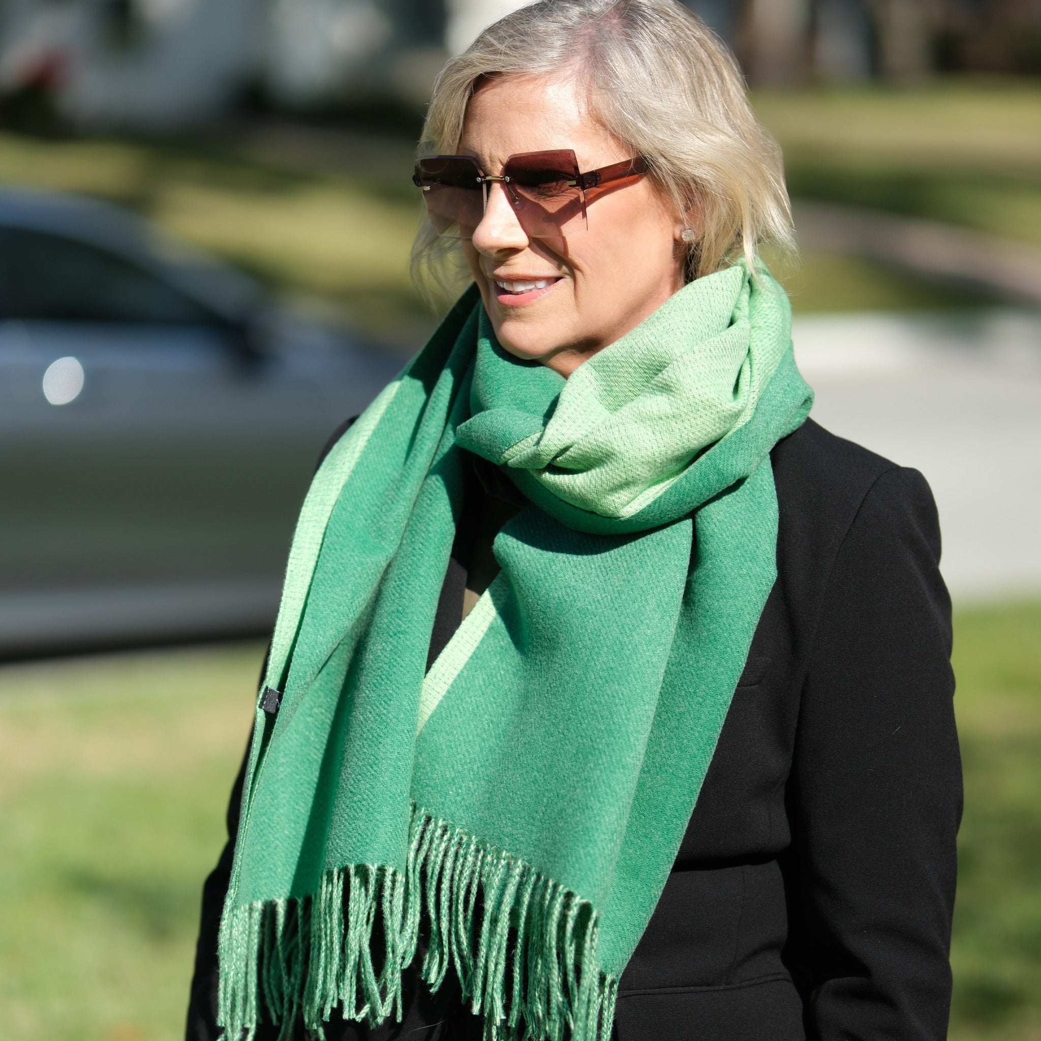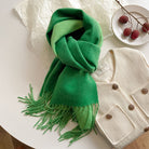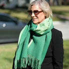 The scarf's beautiful fringe adds a touch of fun and sophistication to any outfit, making it perfect for both casual and formal occasions. Its generous dimensions of 75x24" provide ample coverage, allowing you to drape, wrap, or knot it in countless ways to suit your personal style. Available in a variety of stunning color combinations, including sage and tan, cranberry and light red, and blue and gray, this reversible pashmina scarf offers versatility that complements any wardrobe.