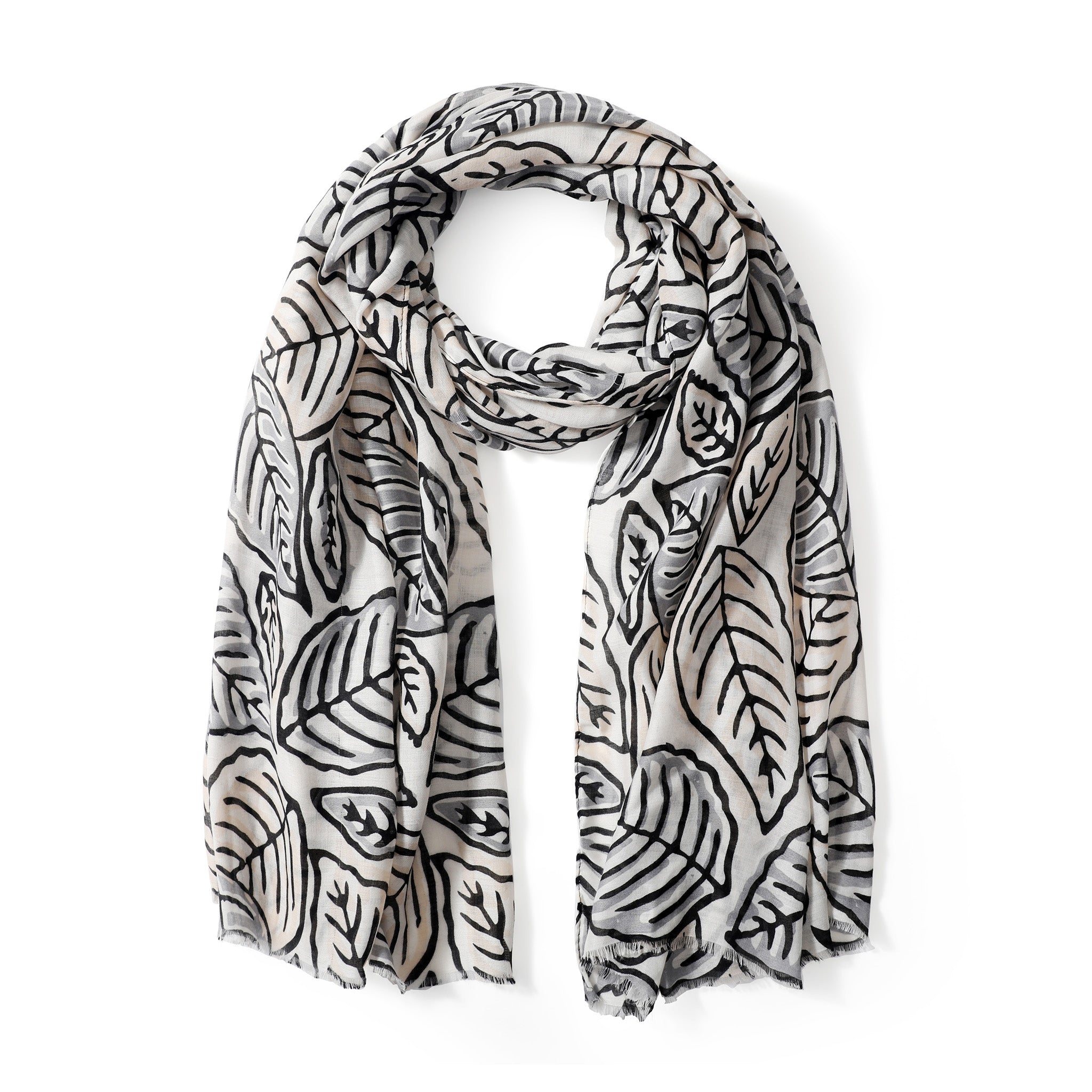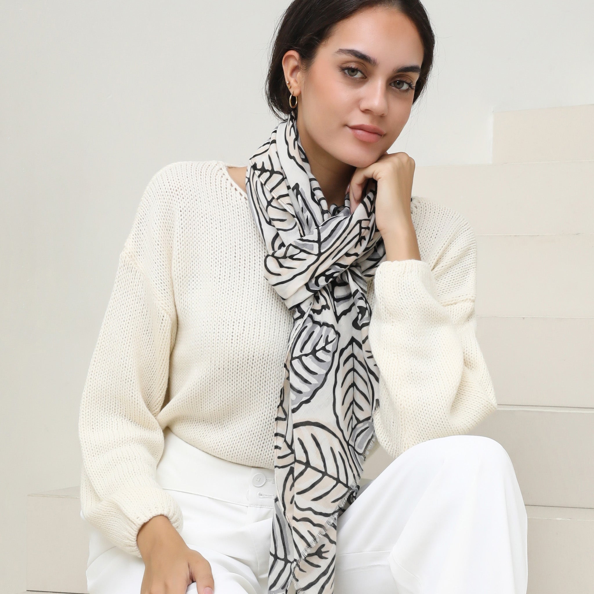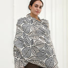 Crisp, modern, and effortlessly elevated—The Margot Scarf is a minimalist dream. Featuring clean black palm leaf outlines on a bright white background, this lightweight scarf brings a fresh, natural vibe to your look. It’s the perfect accessory for lovers of understated elegance and timeless style.