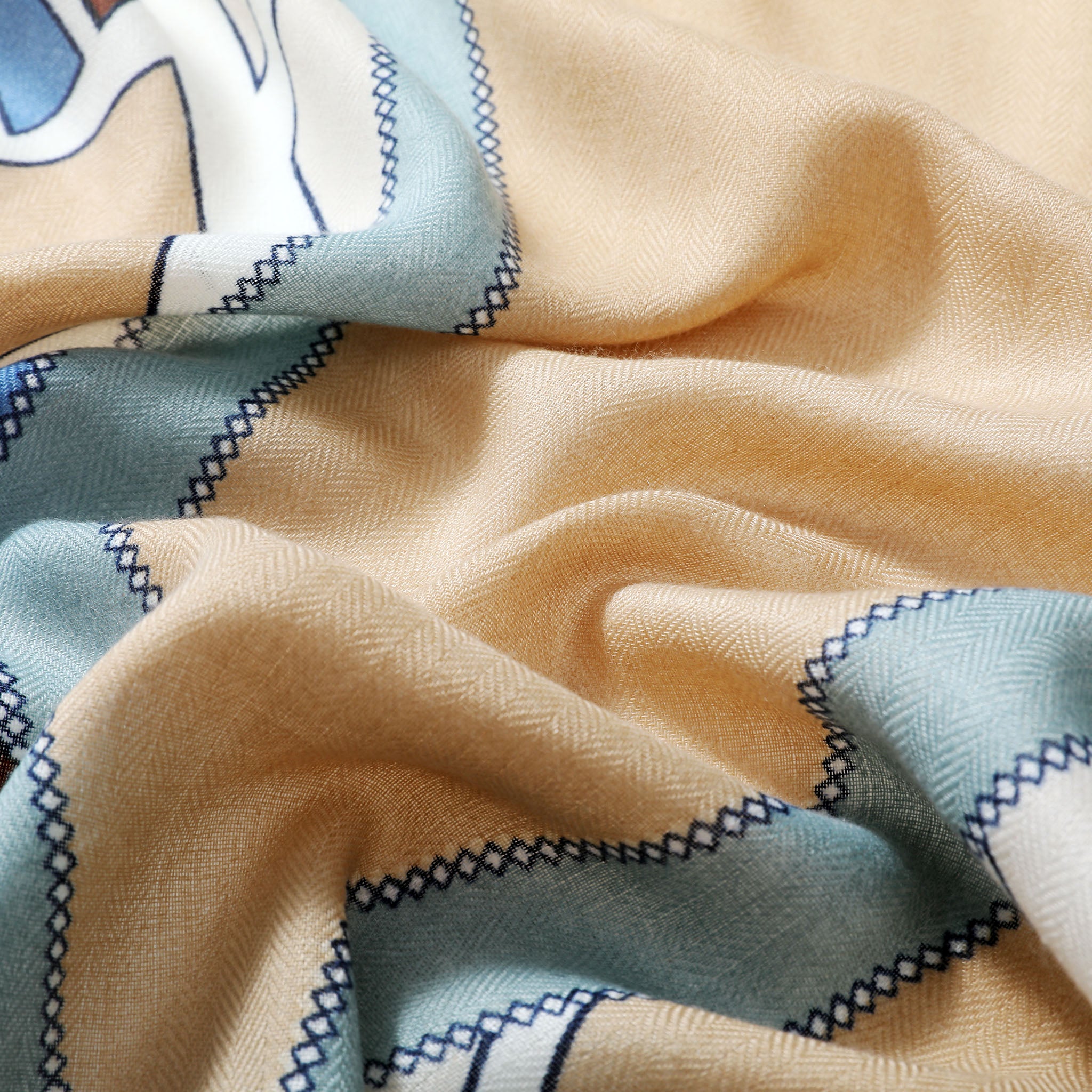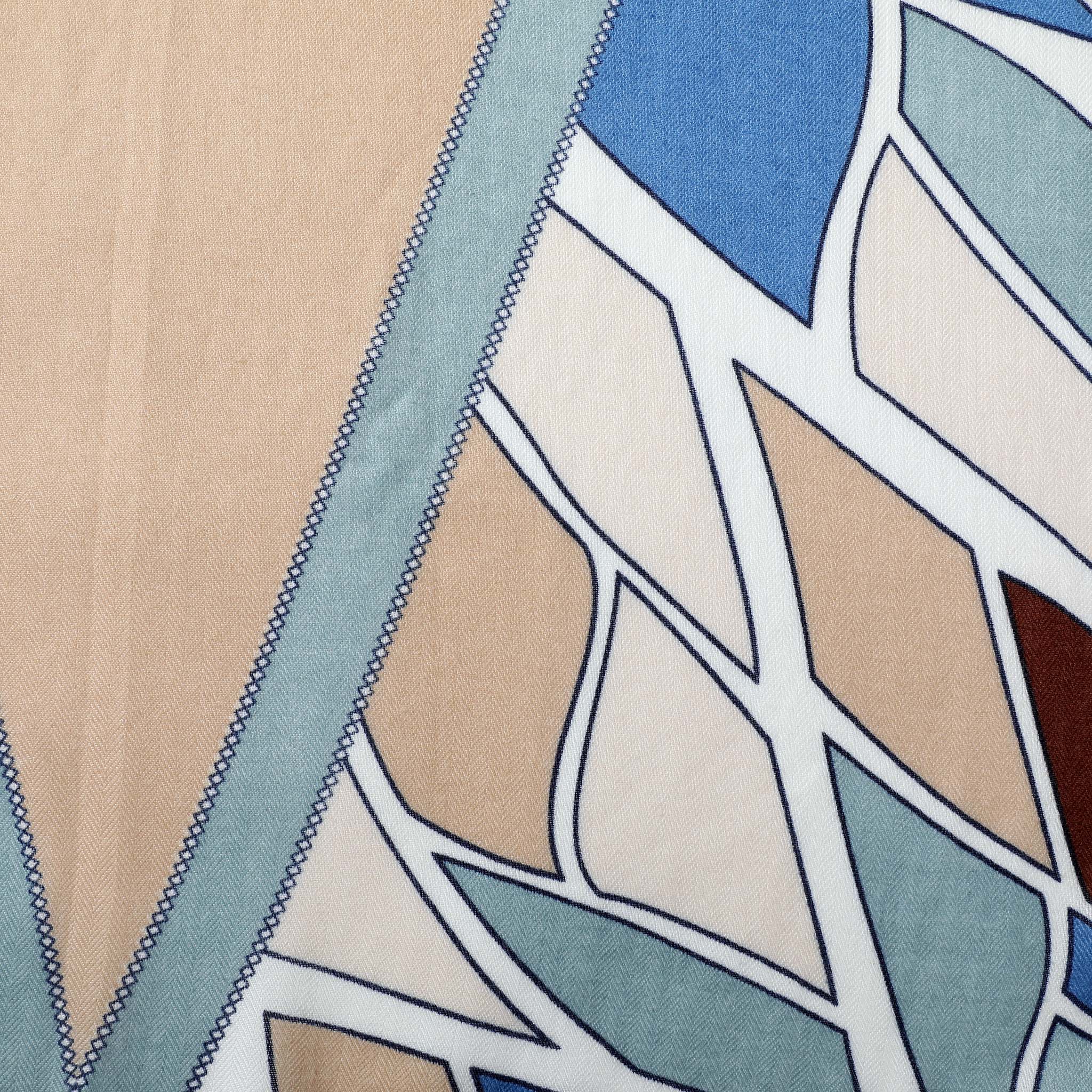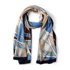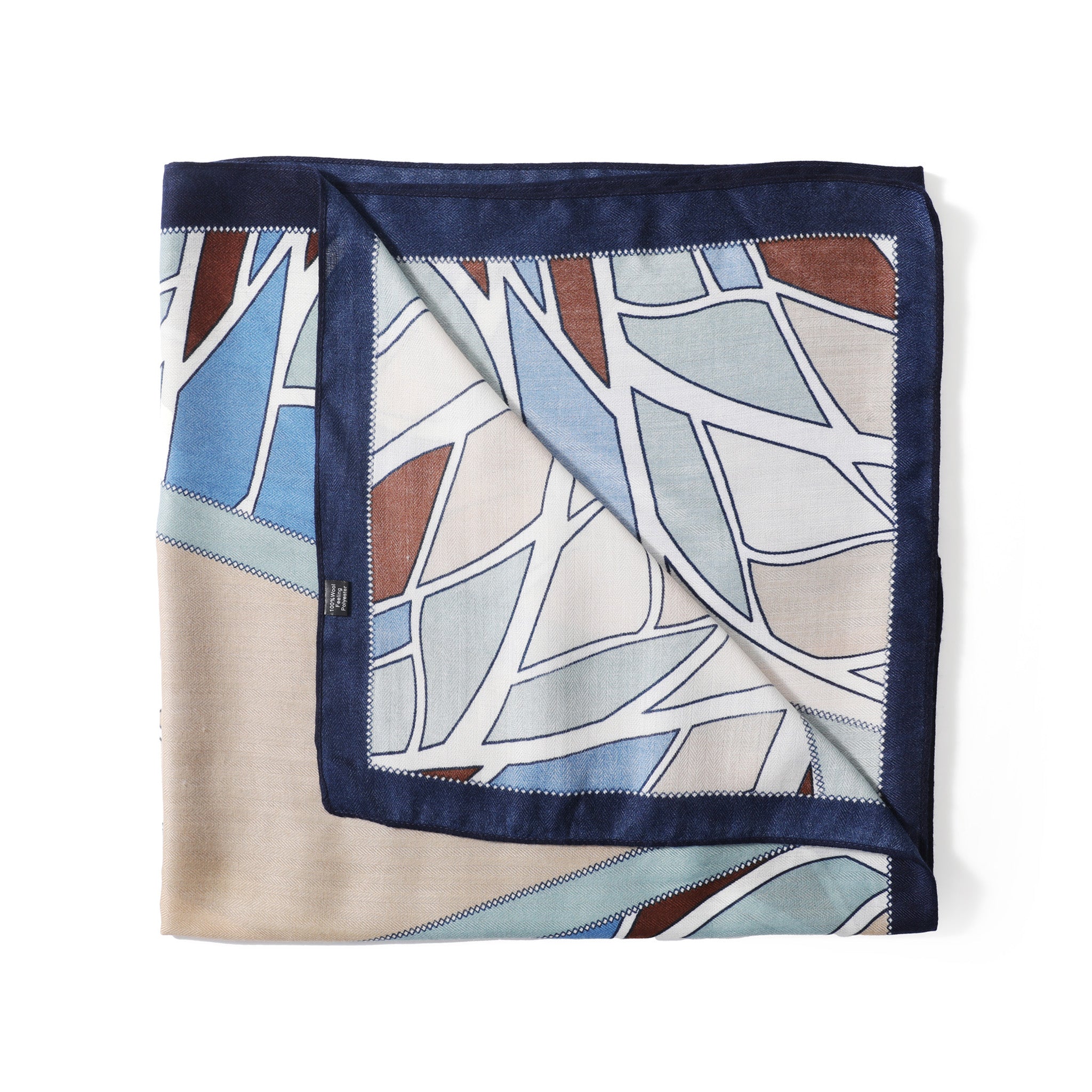 Add charm and versatility to any look. With serene shades of muted green, blue, and tan, accented by crisp white, this scarf is as stylish as it is effortless.