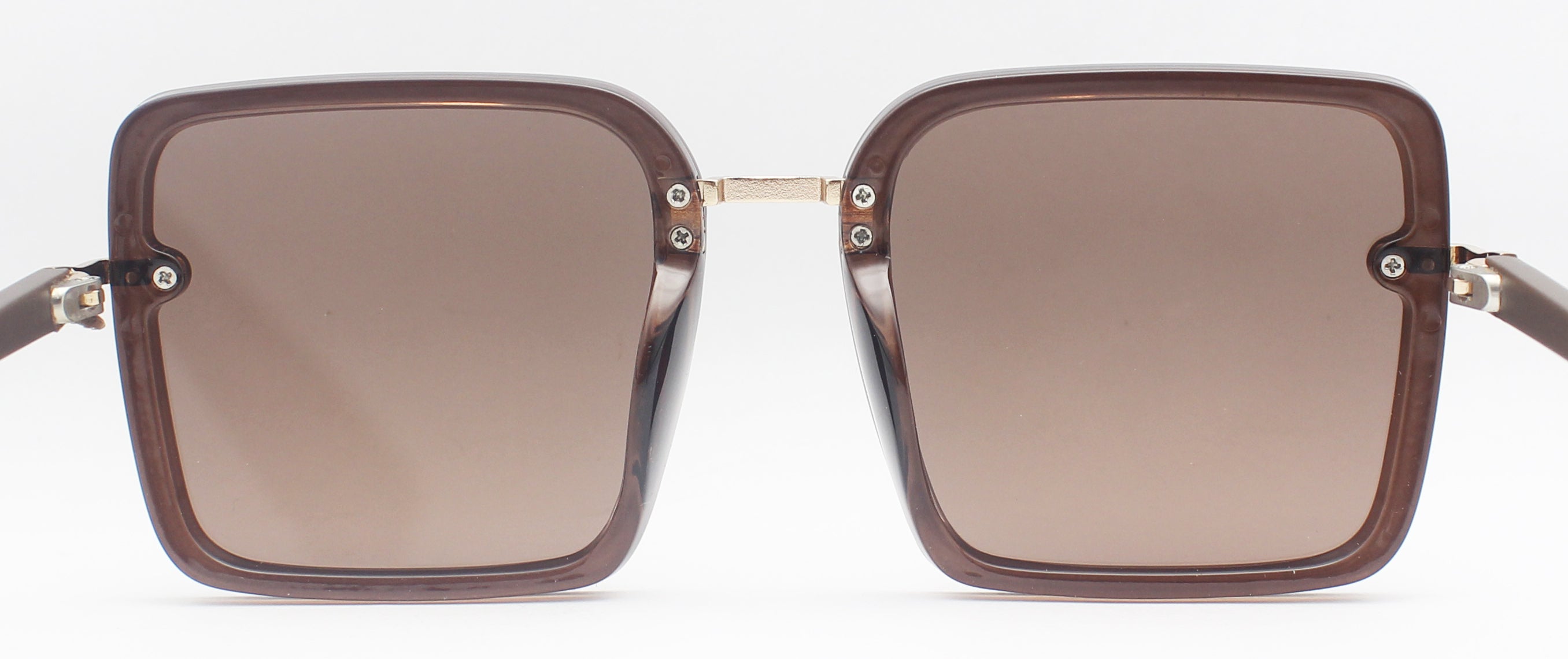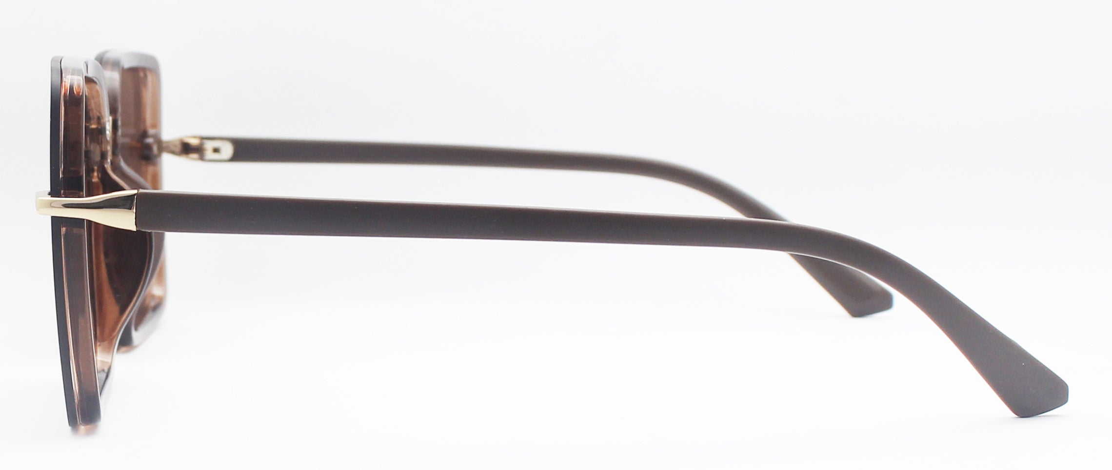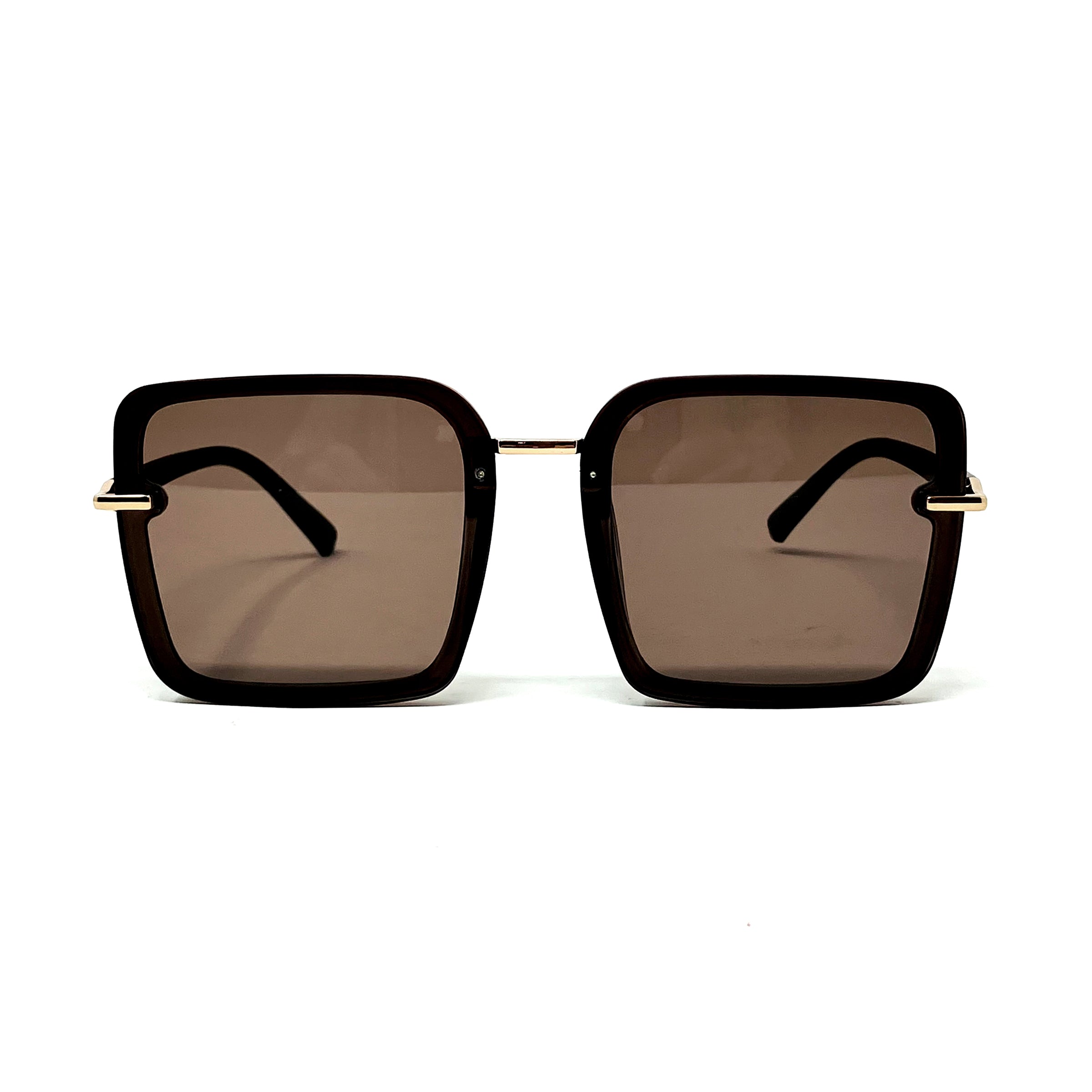 - Plastic geometric frames with gold plastic bridge and hinges and black temples