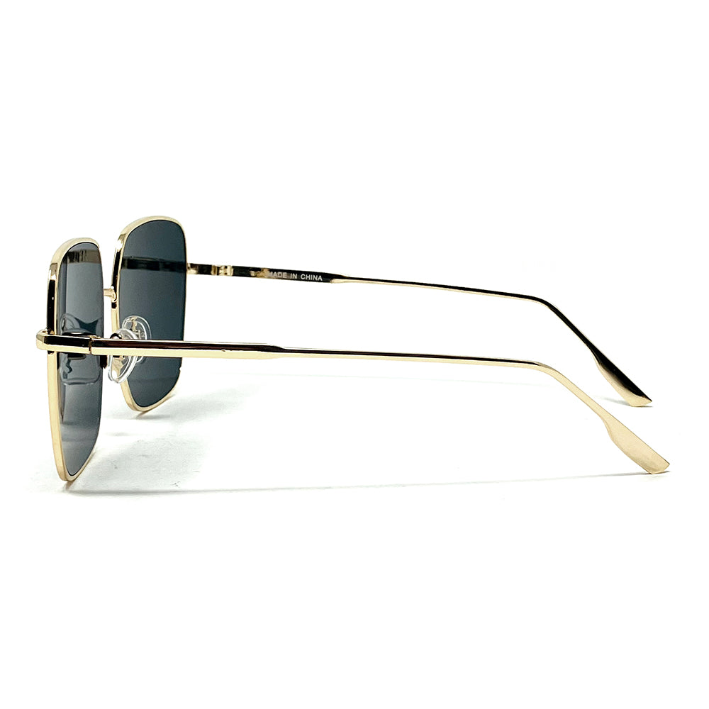 - Polarized lenses with gold plastic frames, bridge, hinges and temples