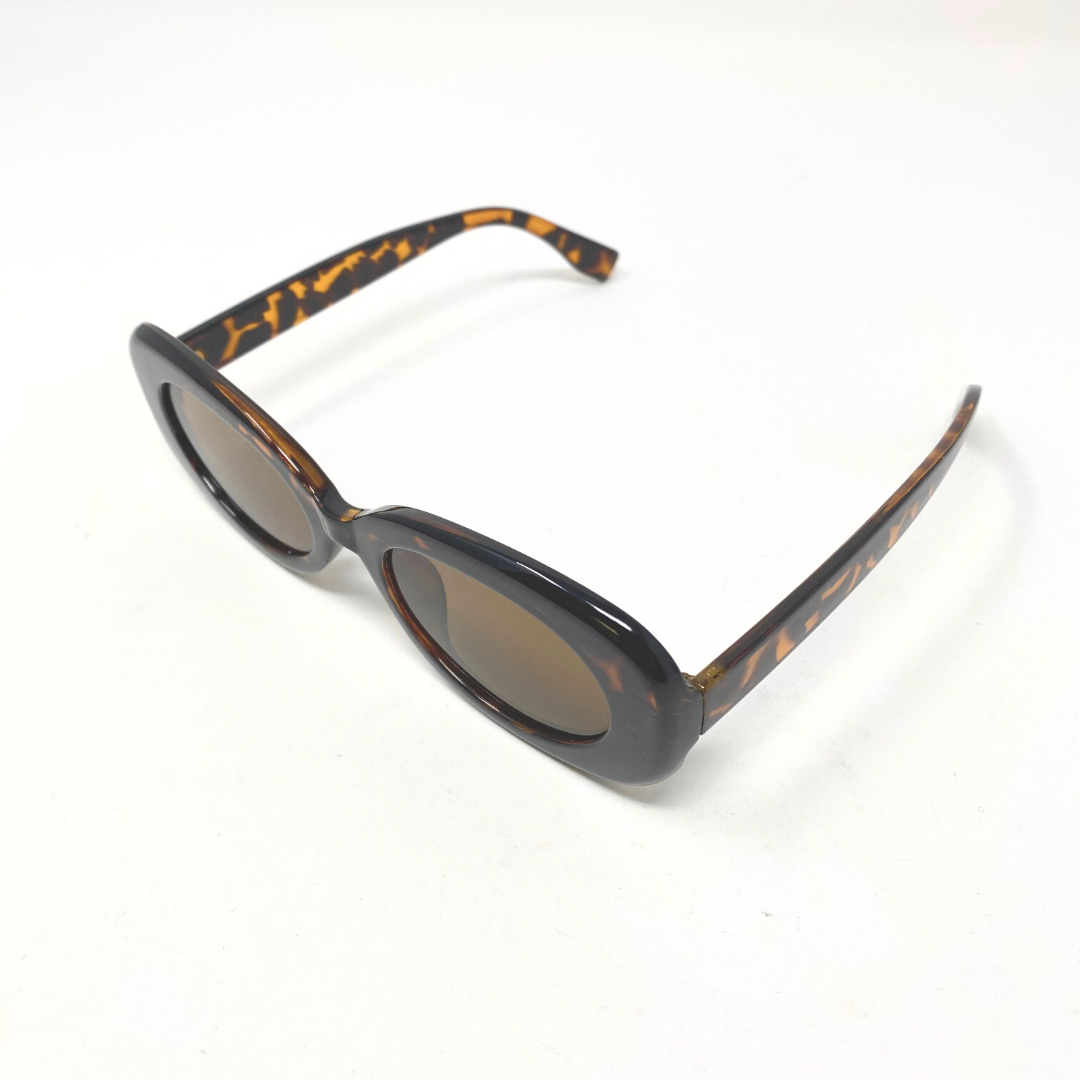 Oval Retro Sunglasses with Polarized Lens - Tortoise
