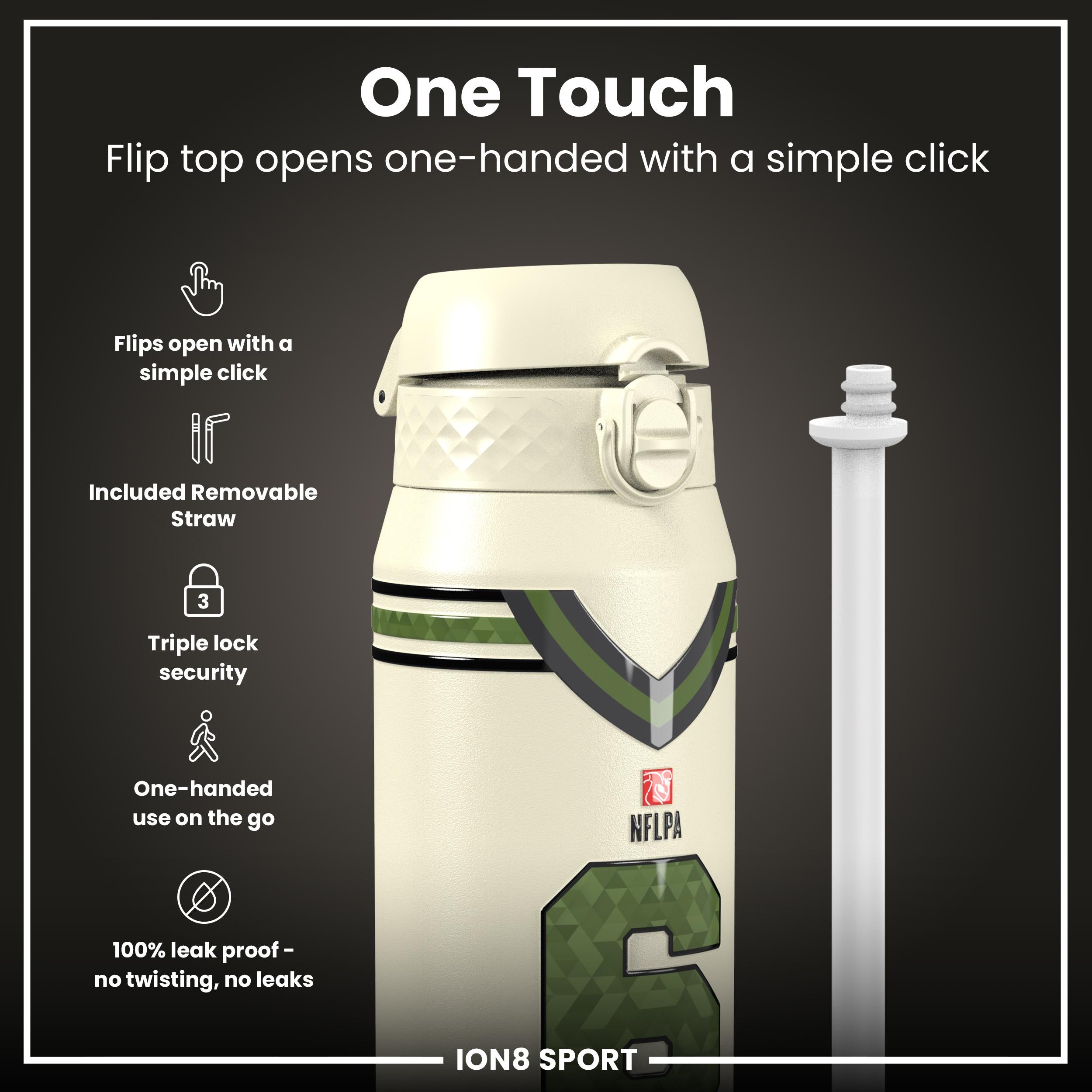 Start your journey towards hydration with a sleek, innovative water bottle that fits effortlessly into your busy routine. Whether you're hitting the gym, heading to the office, or embarking on an outdoor adventure, this stylish vessel is designed to keep your beverages at the desired temperature, thanks to its double-walled stainless steel construction. The convenient flip-top design makes staying refreshed a breeze, allowing for one-handed operation so you can keep moving with ease. From Ion8.This bottle has an added special feature as this bottle features Baker Mayfield, number and photo.