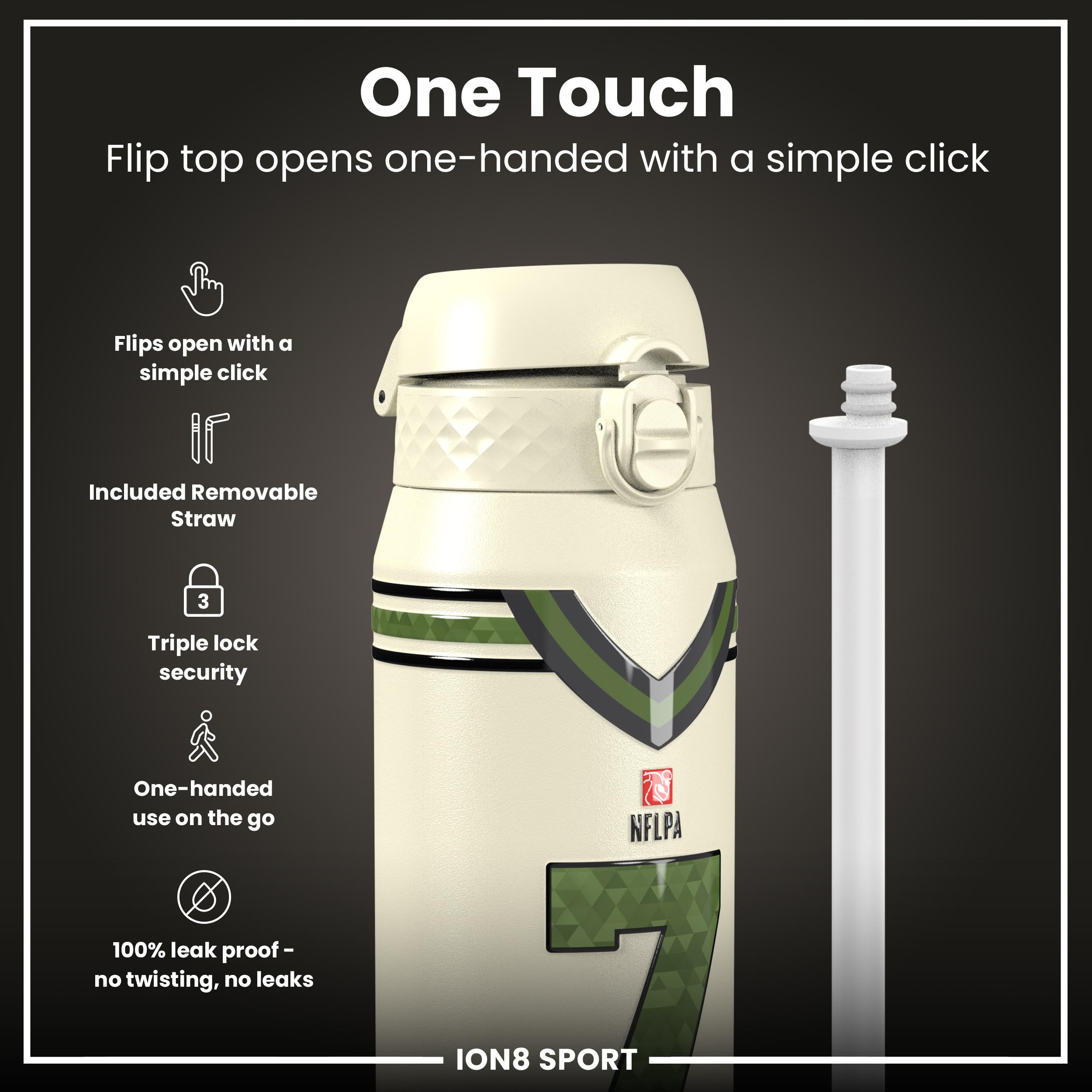Start your journey towards hydration with a sleek, innovative water bottle that fits effortlessly into your busy routine. Whether you're hitting the gym, heading to the office, or embarking on an outdoor adventure, this stylish vessel is designed to keep your beverages at the desired temperature, thanks to its double-walled stainless steel construction. The convenient flip-top design makes staying refreshed a breeze, allowing for one-handed operation so you can keep moving with ease. From Ion8.This bottle has an added special feature as this bottle features CJ Stroud, number and photo.