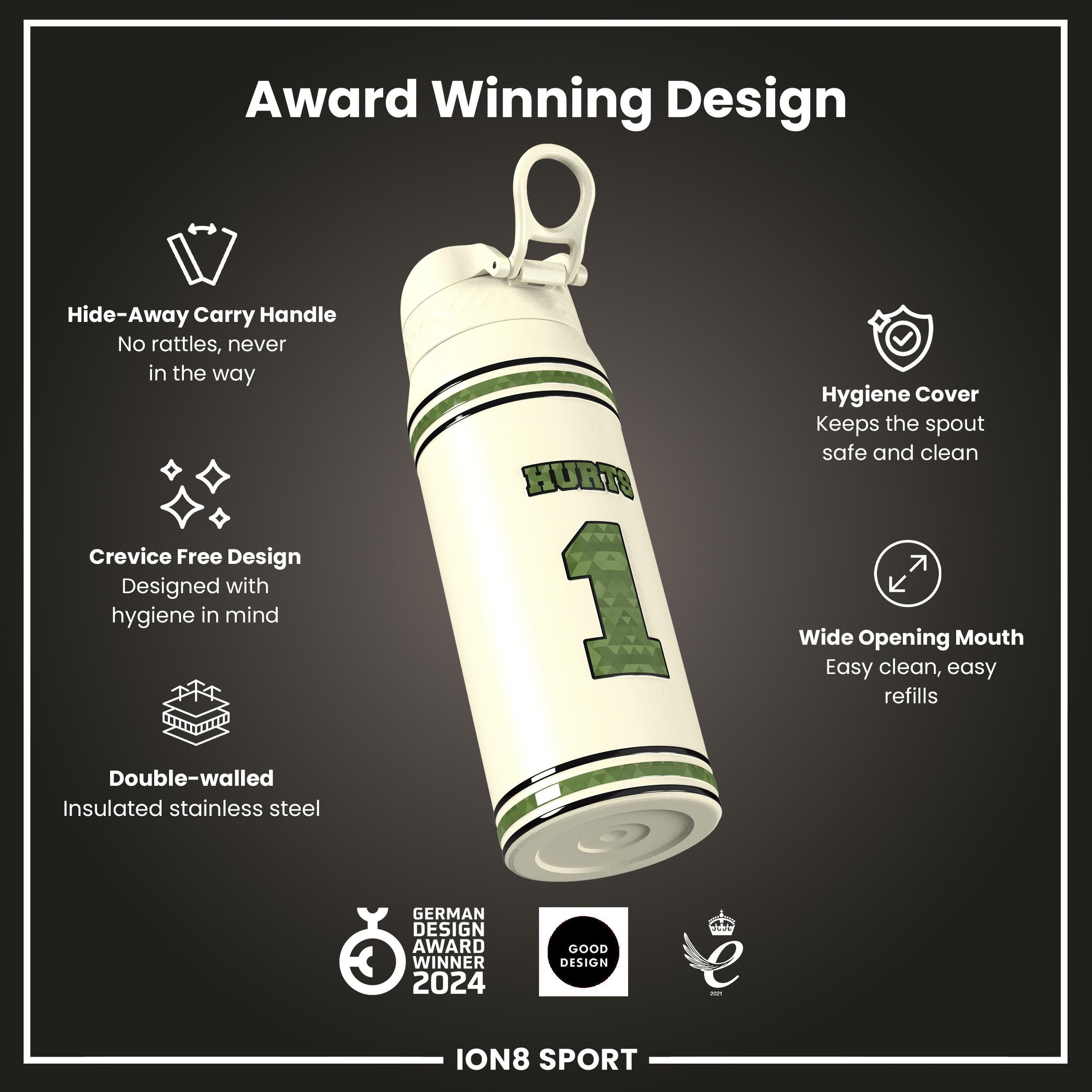 Start your journey towards hydration with a sleek, innovative water bottle that fits effortlessly into your busy routine. Whether you're hitting the gym, heading to the office, or embarking on an outdoor adventure, this stylish vessel is designed to keep your beverages at the desired temperature, thanks to its double-walled stainless steel construction. The convenient flip-top design makes staying refreshed a breeze, allowing for one-handed operation so you can keep moving with ease. From Ion8.This bottle has an added special feature as this bottle features Jalen Hurts, number and photo.