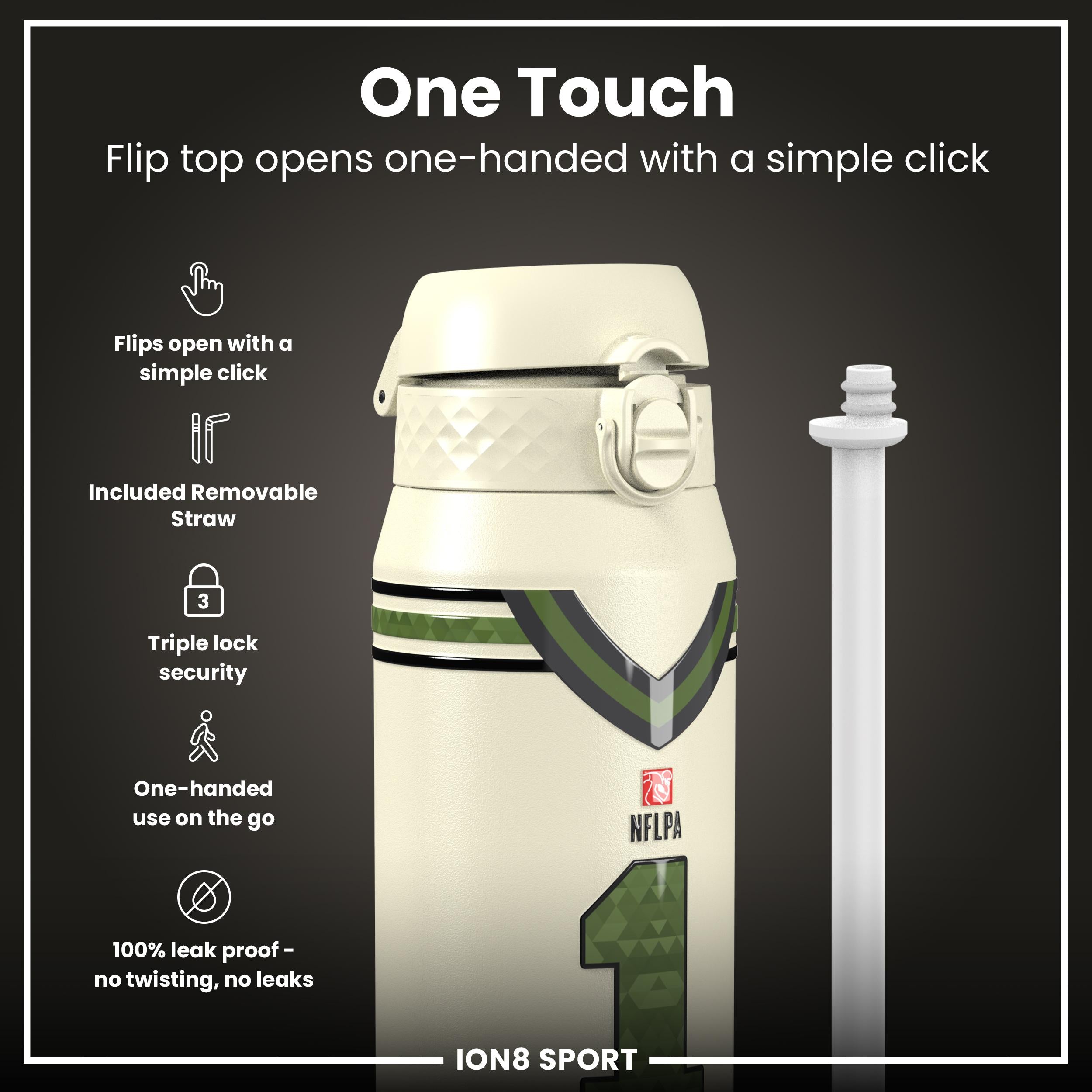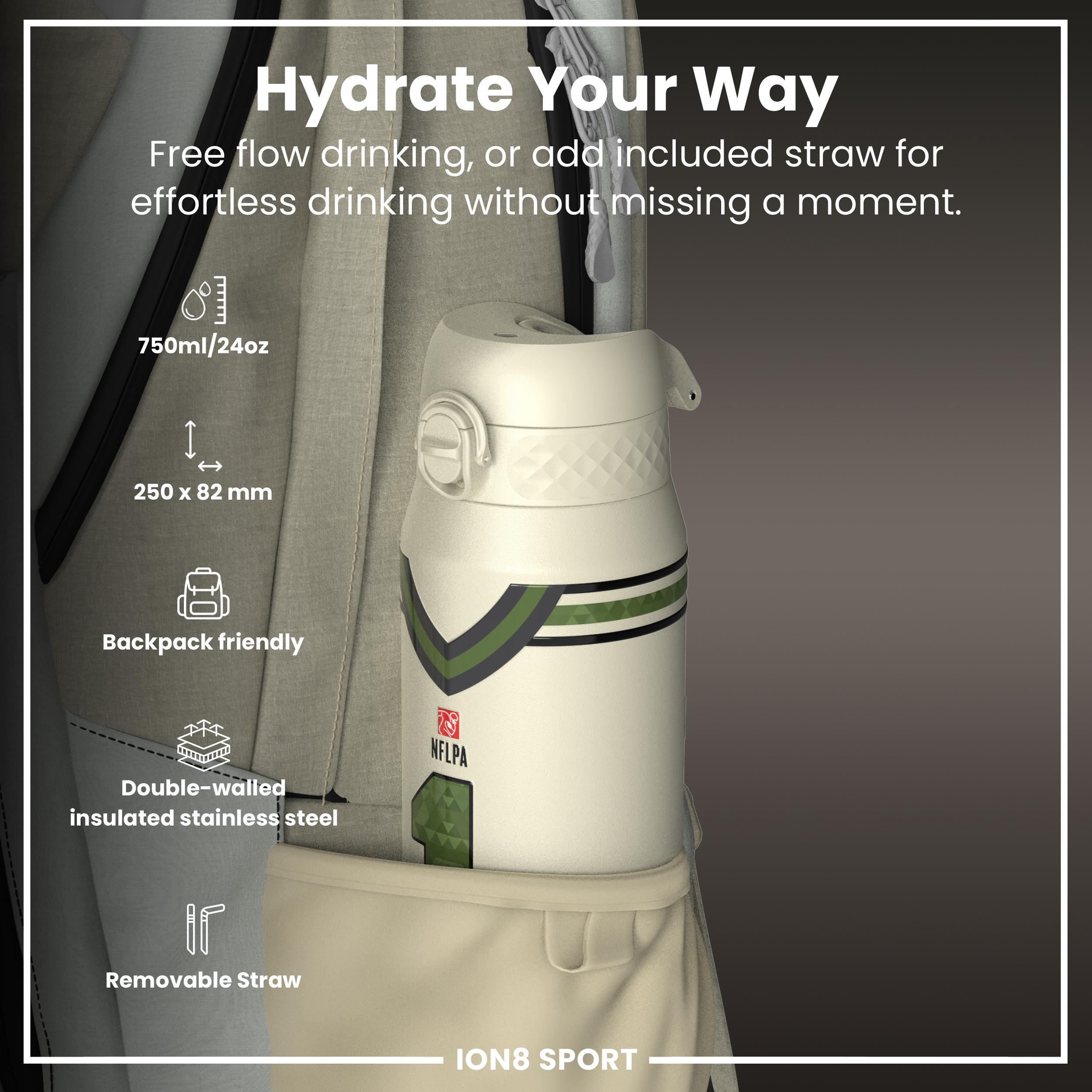 Start your journey towards hydration with a sleek, innovative water bottle that fits effortlessly into your busy routine. Whether you're hitting the gym, heading to the office, or embarking on an outdoor adventure, this stylish vessel is designed to keep your beverages at the desired temperature, thanks to its double-walled stainless steel construction. The convenient flip-top design makes staying refreshed a breeze, allowing for one-handed operation so you can keep moving with ease. From Ion8.This bottle has an added special feature as this bottle features Kyler Murray, number and photo.