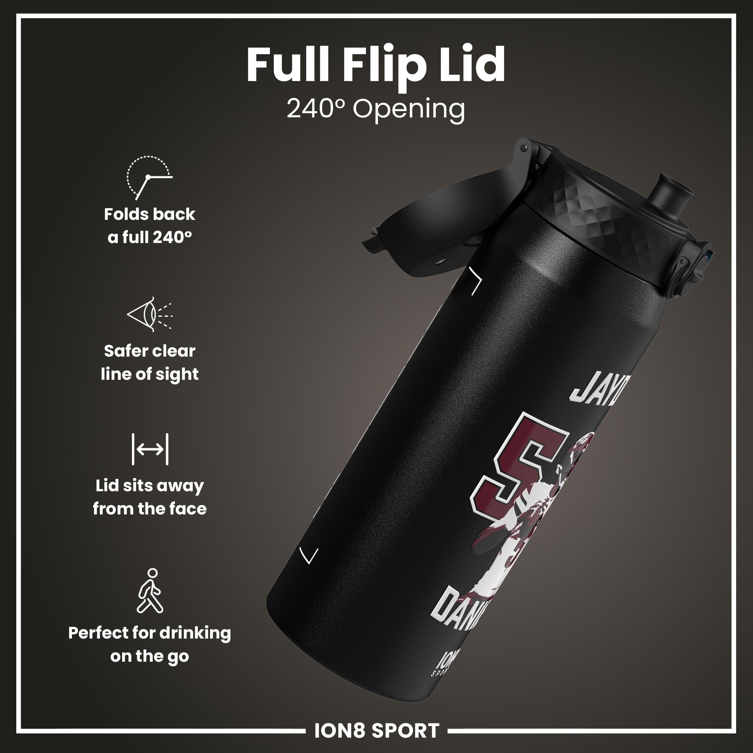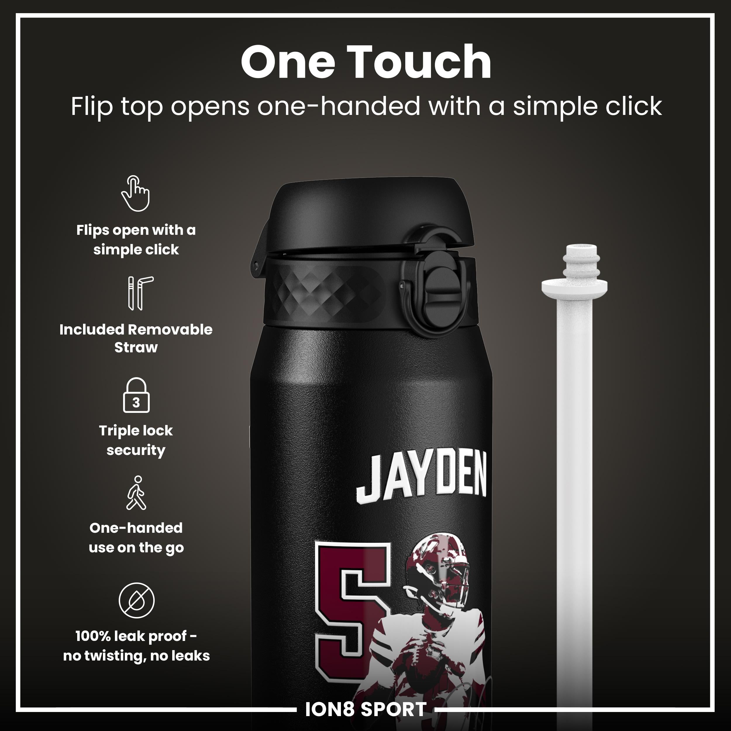 DescriptionStart your journey towards hydration with a sleek, innovative water bottle that fits effortlessly into your busy routine. Whether you're hitting the gym, heading to the office, or embarking on an outdoor adventure, this stylish vessel is designed to keep your beverages at the desired temperature, thanks to its double-walled stainless steel construction. The convenient flip-top design makes staying refreshed a breeze, allowing for one-handed operation so you can keep moving with ease. From Ion8.This bottle has an added special feature as this bottle features Jayden Daniels, number and photo.