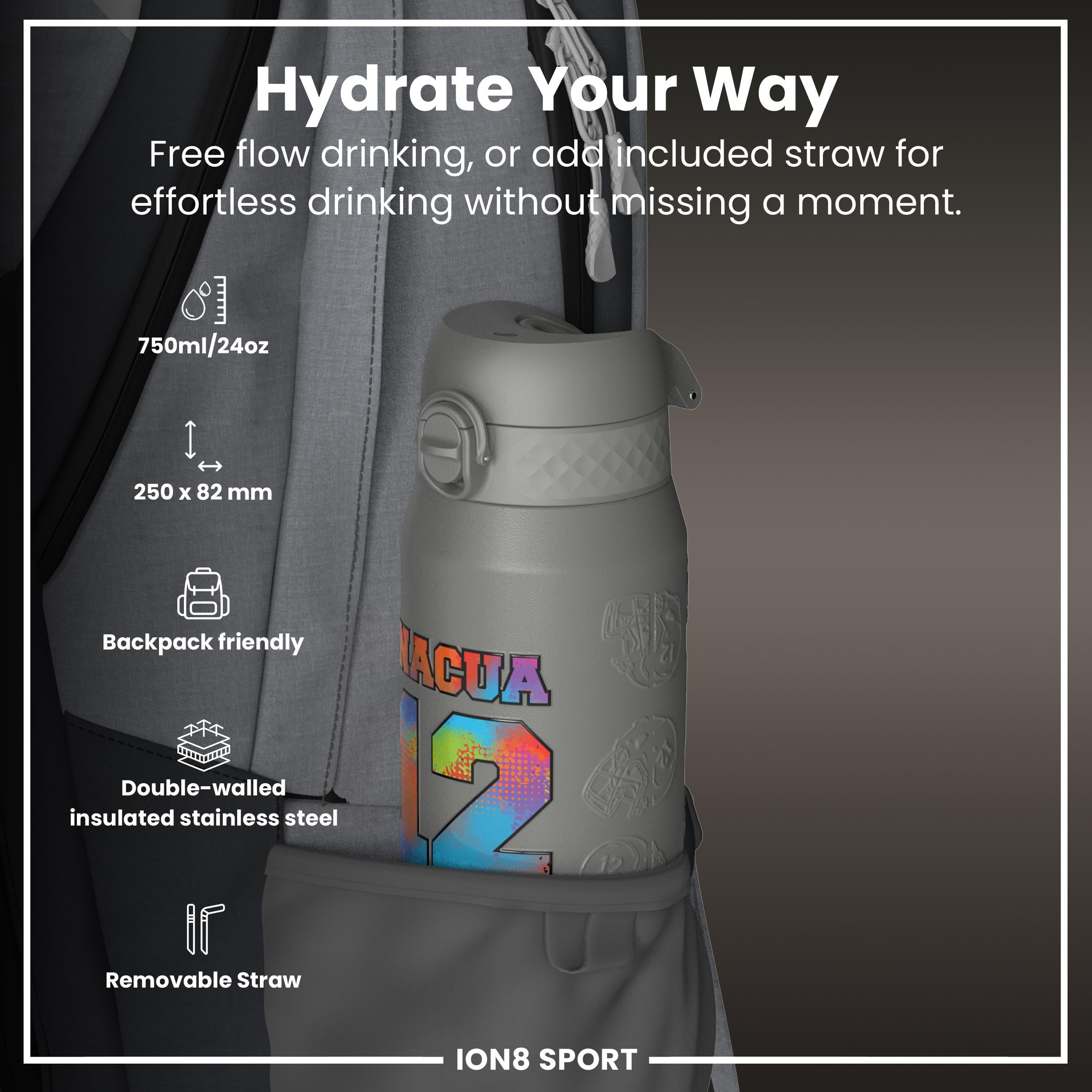 Start your journey towards hydration with a sleek, innovative water bottle that fits effortlessly into your busy routine. Whether you're hitting the gym, heading to the office, or embarking on an outdoor adventure, this stylish vessel is designed to keep your beverages at the desired temperature, thanks to its double-walled stainless steel construction. The convenient flip-top design makes staying refreshed a breeze, allowing for one-handed operation so you can keep moving with ease. From Ion8.This bottle has an added special feature as this bottle features Puka Nacua, number and photo.