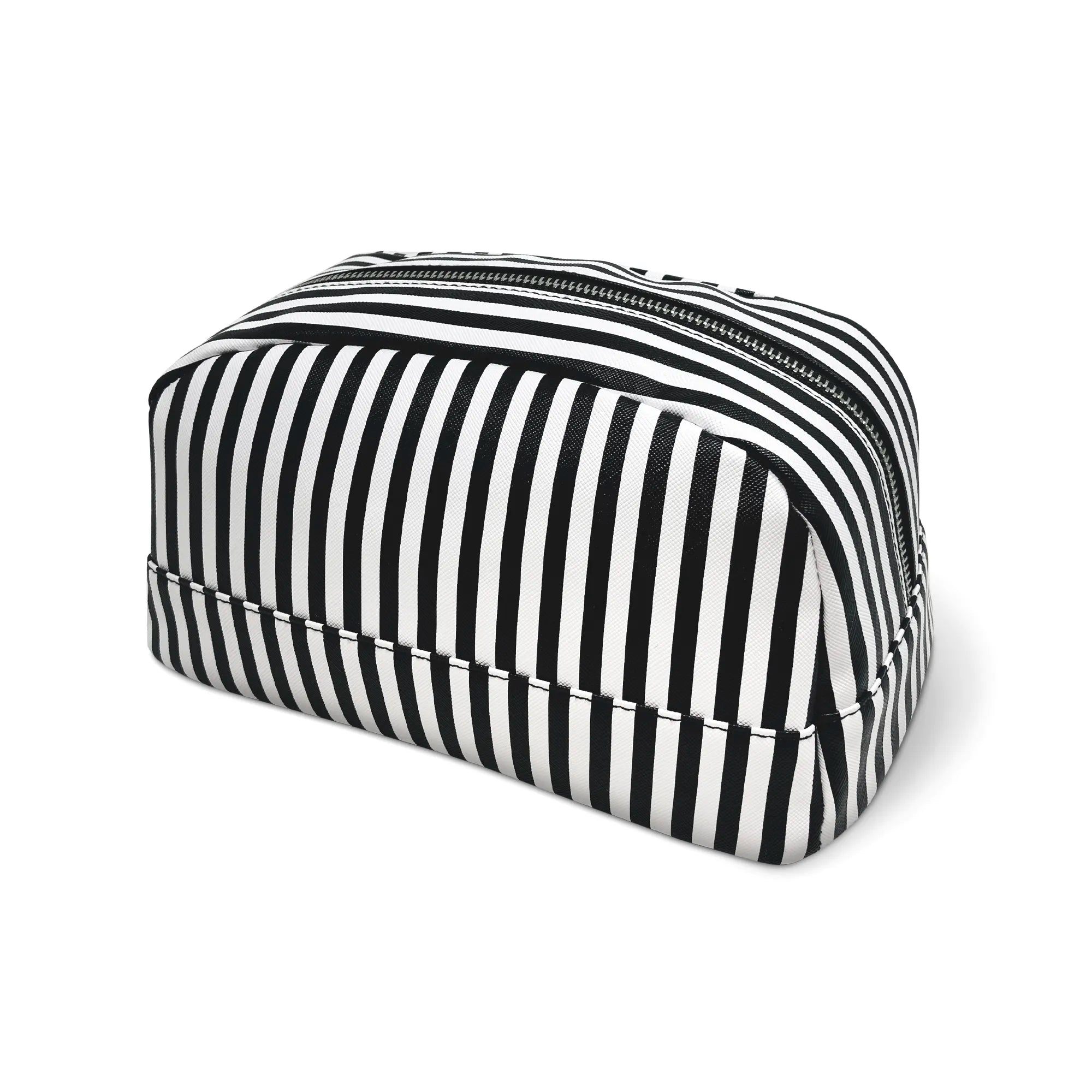 The Pinstripe - Black & White Striped Cosmetic Bag