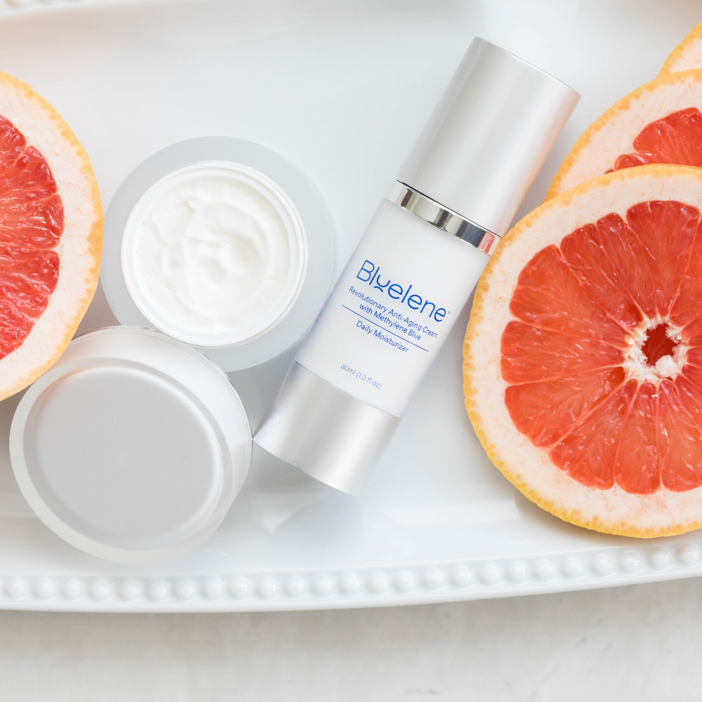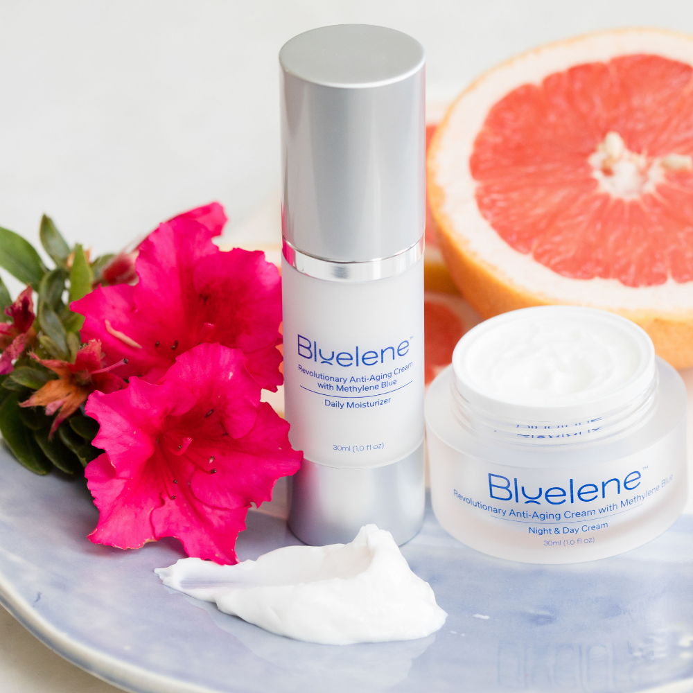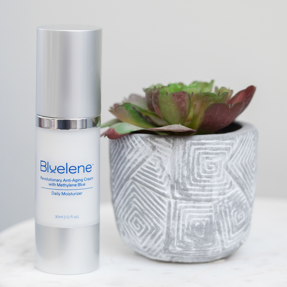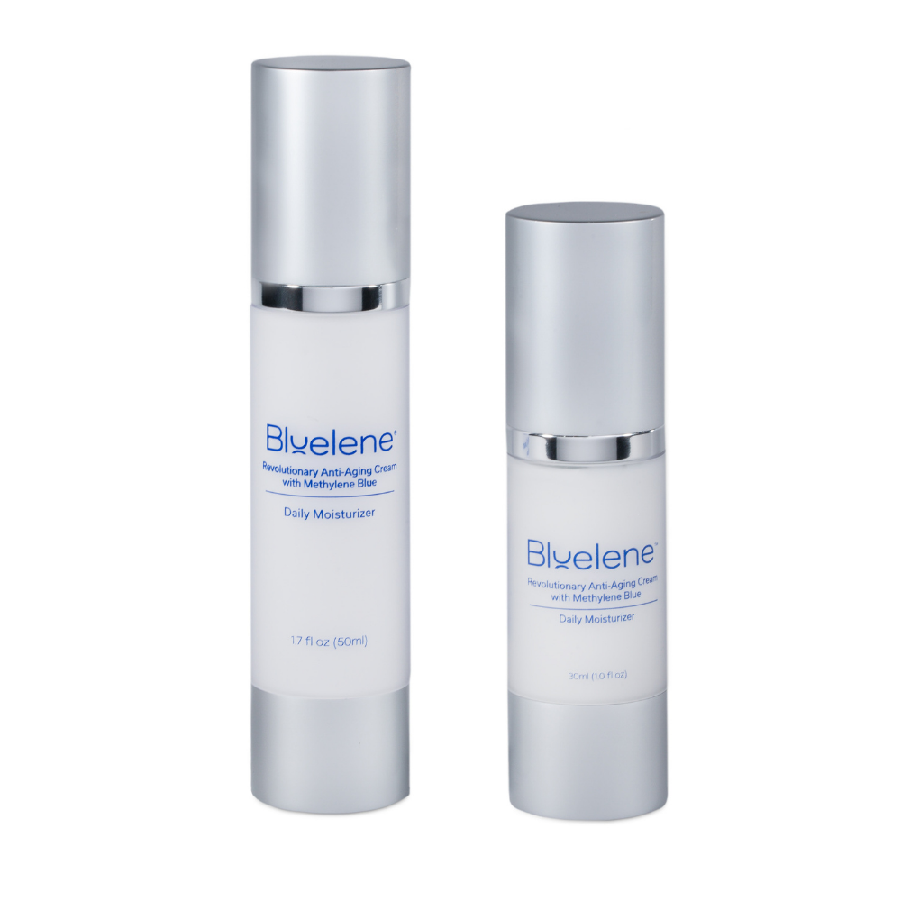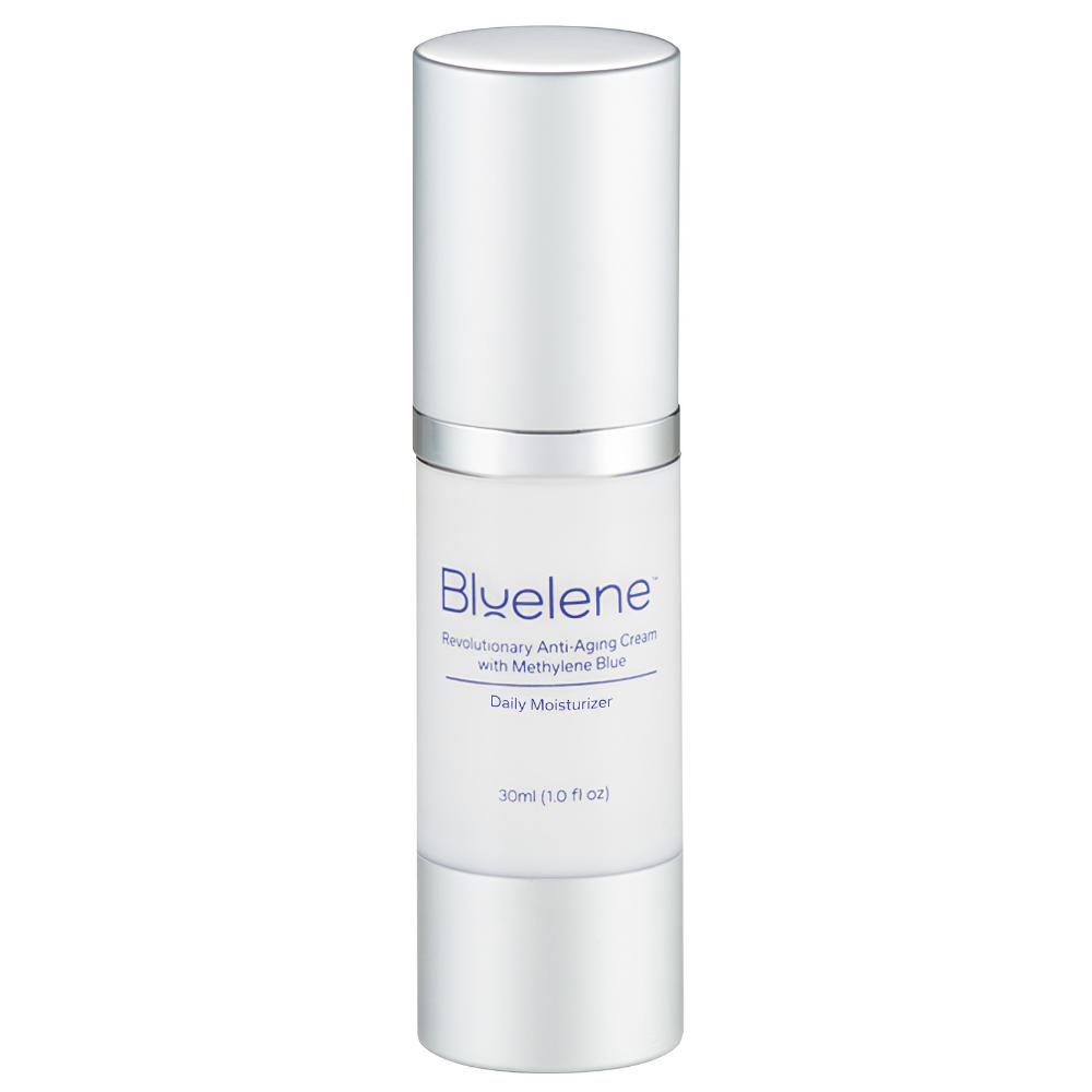 This lightweight daily moisturizer is loaded with supercharged ingredients including Methylene Blue, the breakthrough antioxidant to increase cell turnover, reduce the appearance of fine lines and wrinkles and nourish your skin throughout the day. Our signature ingredient Methylene Blue is a preferred alternative for sensitive skin sufferers to retinol! This patented formulation is scientifically proven to stimulate your own skin cells to double the collagen and elastin production after just 2 weeks of use. Our Daily Moisturizer is proudly made in the USA and is formulated for ALL skin types.