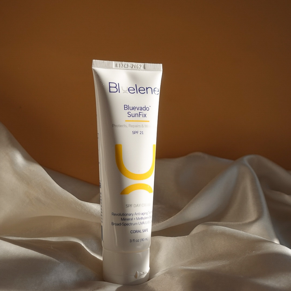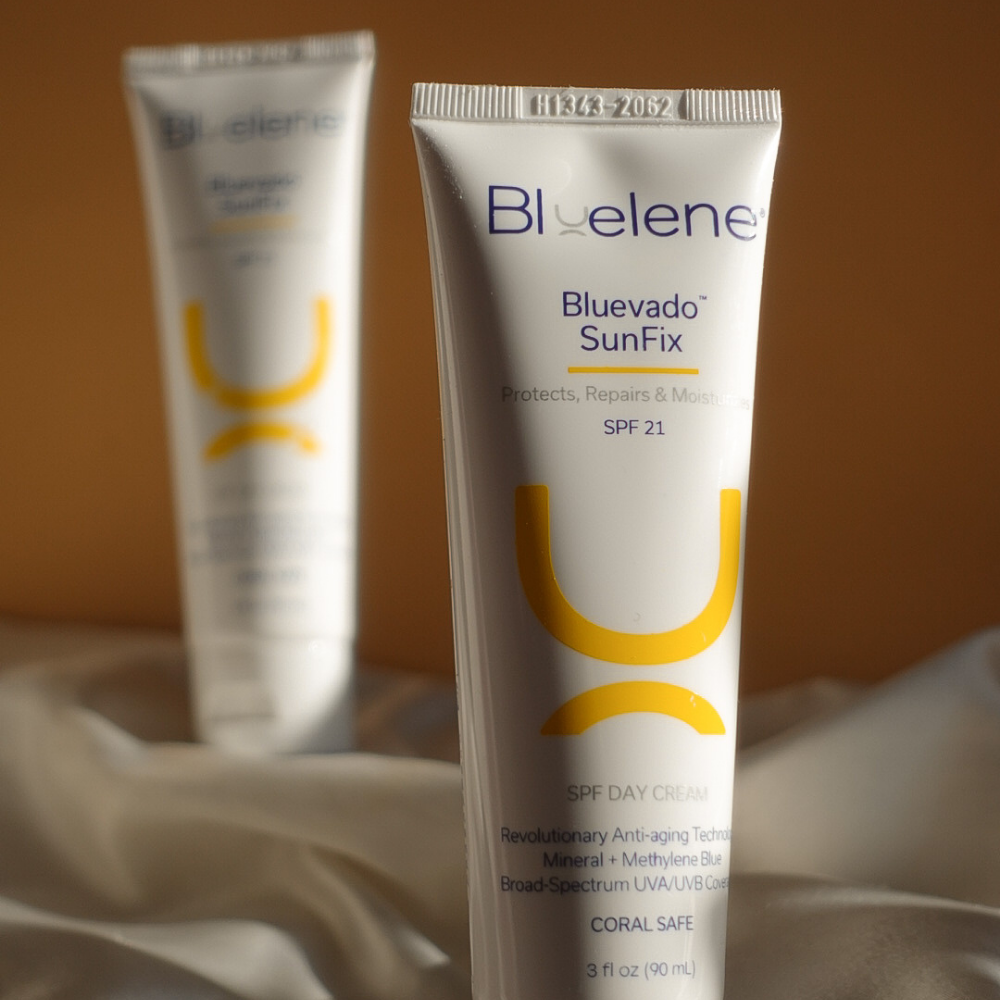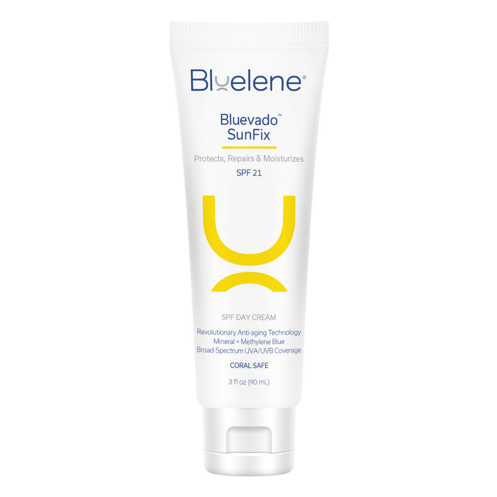 Bluevado SunFix is the first FDA-approved anti-aging sunscreen with Methylene Blue. Methylene Blue’s unique ability to promote skin cell health, repair/delay skin aging and protect against UVA and UVB radiation, is now captured in the bravado of this revolutionary SPF Day Cream.