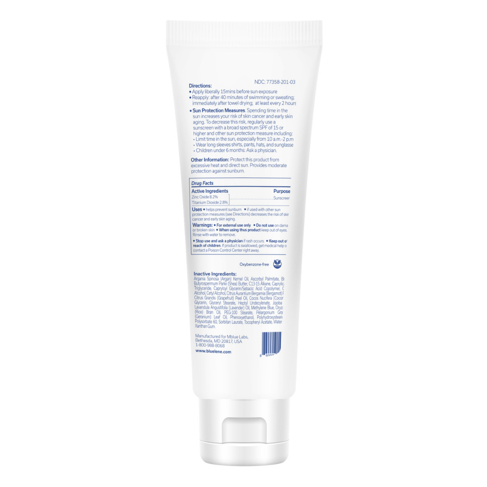 Inactive Ingredients: Water (Aqua), Caprylic/Capric Triglyceride, C13-15 Alkane, Cetearyl Alcohol, Glycerin, Oryza Sativa (Rice) Bran Oil, Heptyl Undecylenate, Cetyl Alcohol, Argania Spinosa (Argan) Kernel Oil, Tocopheryl Acetate, Glyceryl Stearate, PEG-100 Stearate, Capryloyl Glycerin/Sebacic Acid Copolymer, Sorbitan Laurate, Butyrospermum Parkii (Shea) Butter, Cocos Nucifera (Coconut) Oil, Bisabolol, Xanthan Gum, Polyhydroxystearic Acid, Jojoba Esters, Polysorbate 60, Ascorbyl Palmitate, Citrus Aurantium Bergamia (Bergamot) Peel Oil, Pelargonium Graveolens (Geranium) Leaf Oil, Citrus Grandis (Grapefruit) Peel Oil, Lavandula Angustifolia (Lavender) Oil, Phenoxyethanol, Caprylyl Glycol, Methylene Blue.