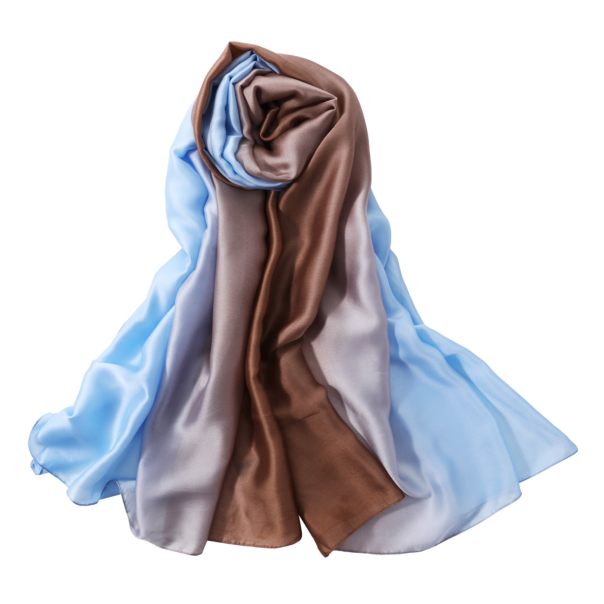Harper & Hyde - Lightweight Faux Silk Brown to Blue Ombre Scarf