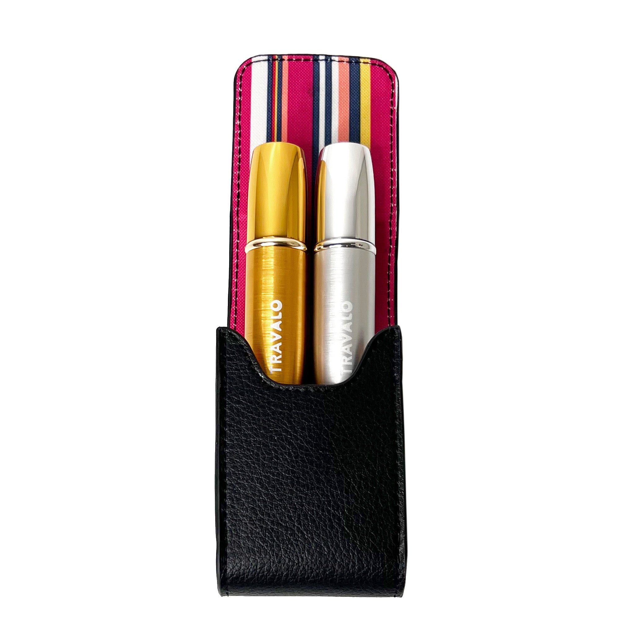 Experience unmatched convenience and style with the Travalo LUX Carry 2 Bundle. This meticulously crafted set features two premium atomizers in Silver and Gold, complemented by a chic Black Carrying Case. Designed with the modern traveler in mind, these refillable atomizers make carrying your favorite fragrances seamless and sophisticated. Compact yet striking, this bundle offers both functionality and timeless elegance, ensuring you’re always prepared to leave an unforgettable impression. Perfect for individuals who value both practicality and luxury in their daily routines.