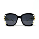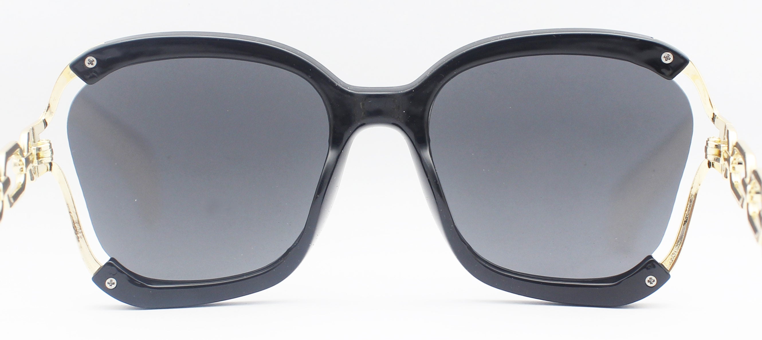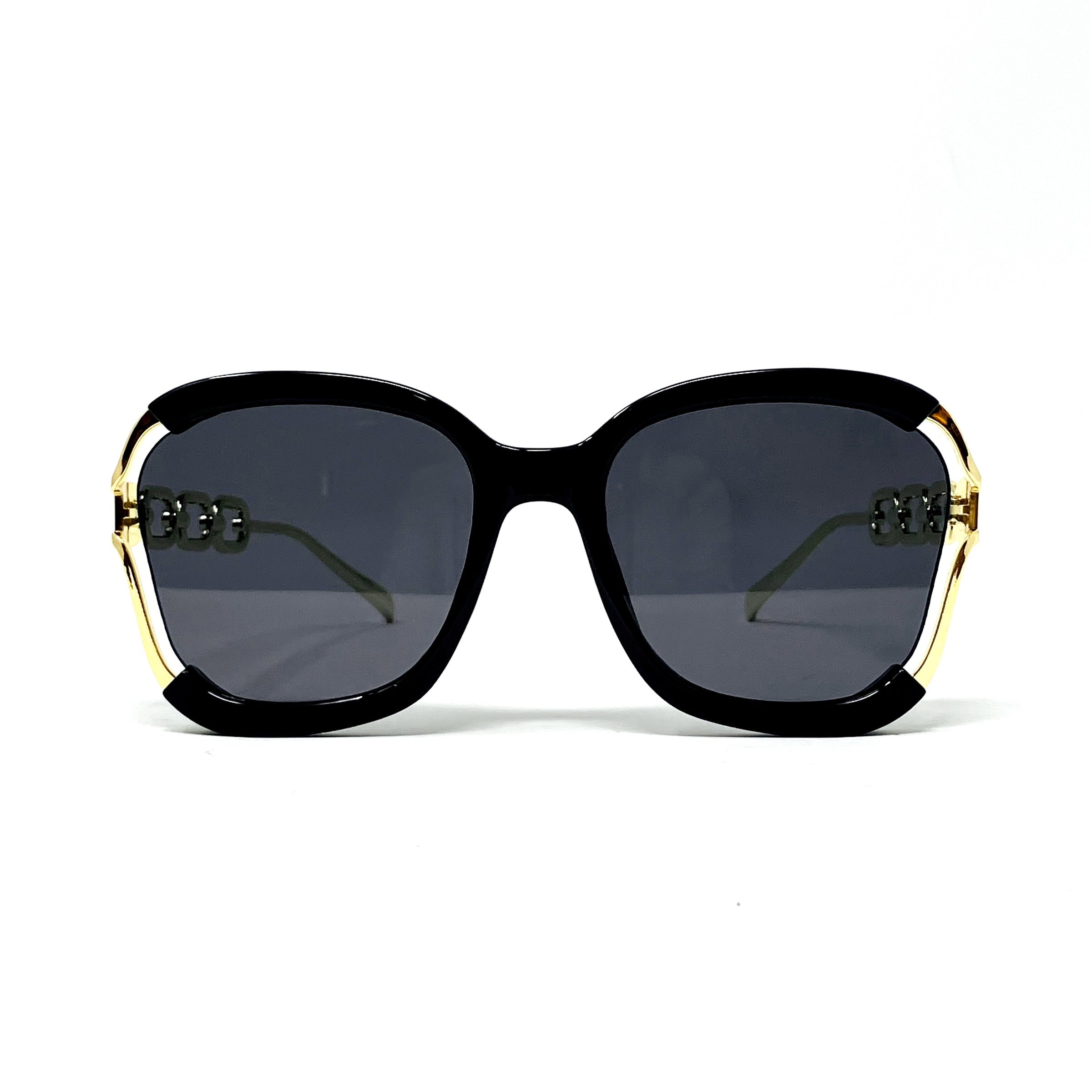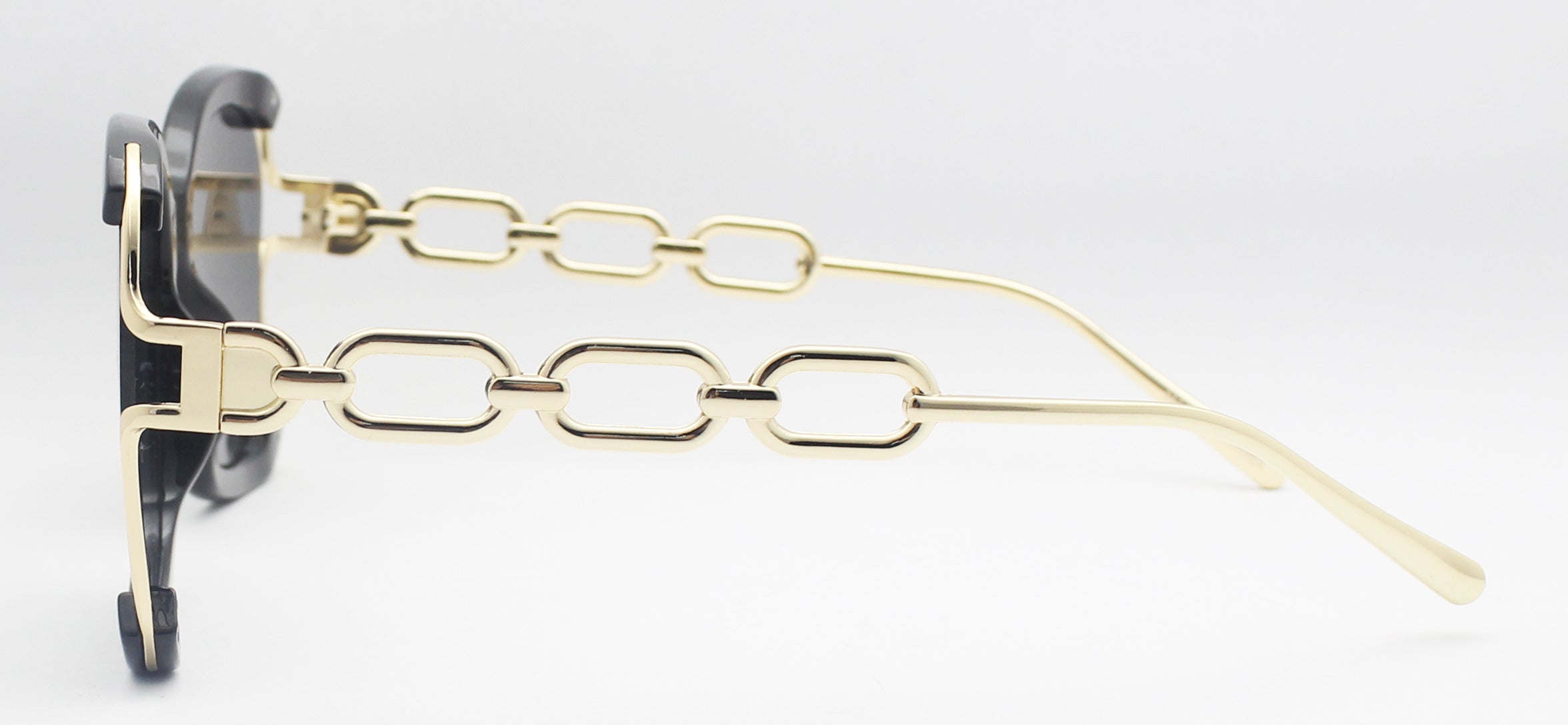 These oversized black glasses with gold details are both bold and feminine. The gold chain patterned temple is eye-catching and this great silhouette is sure to make you stand out in the crowd!