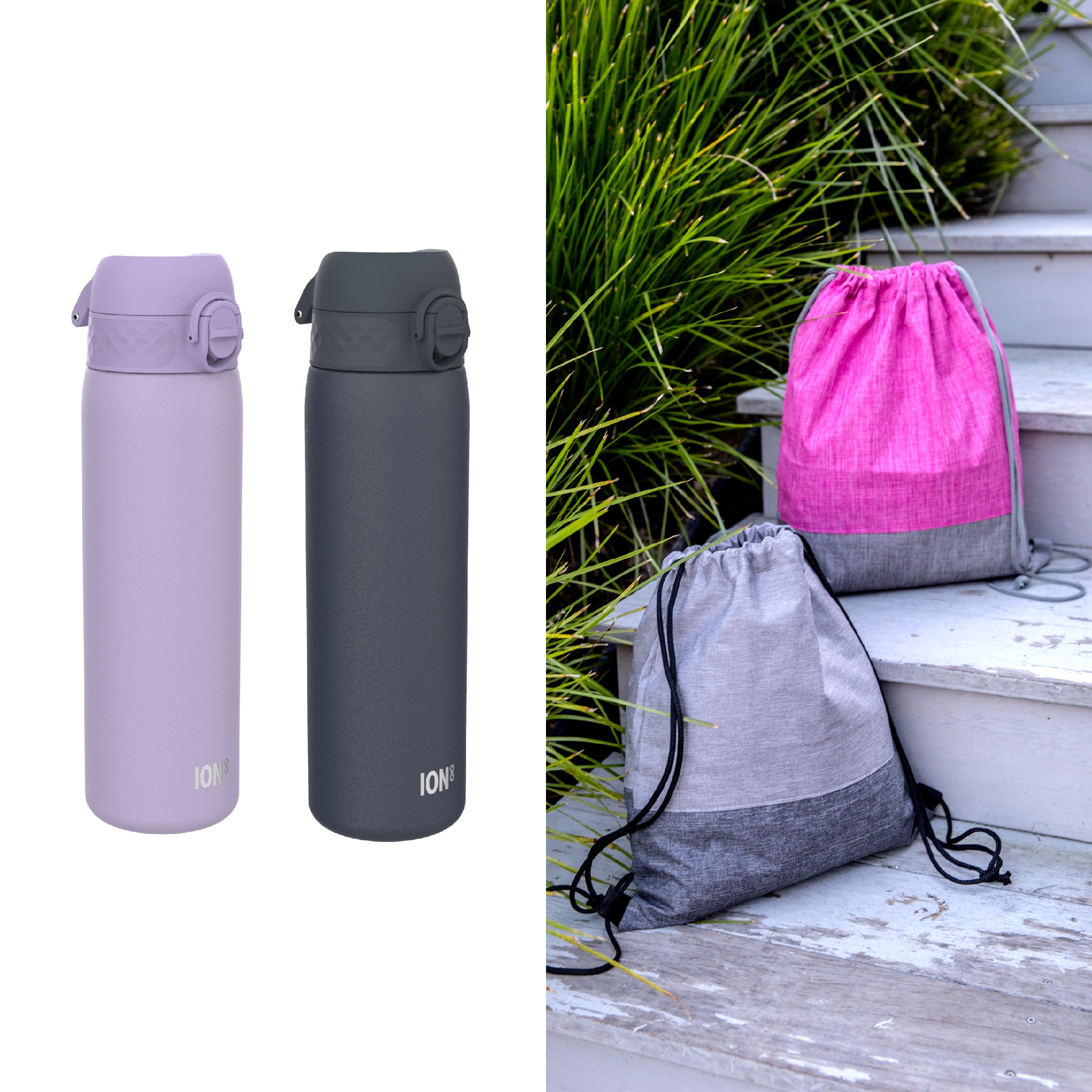 Nomad Day Pack in Grey & Pink / Water Bottle in Purple & Ash Navy Bundle