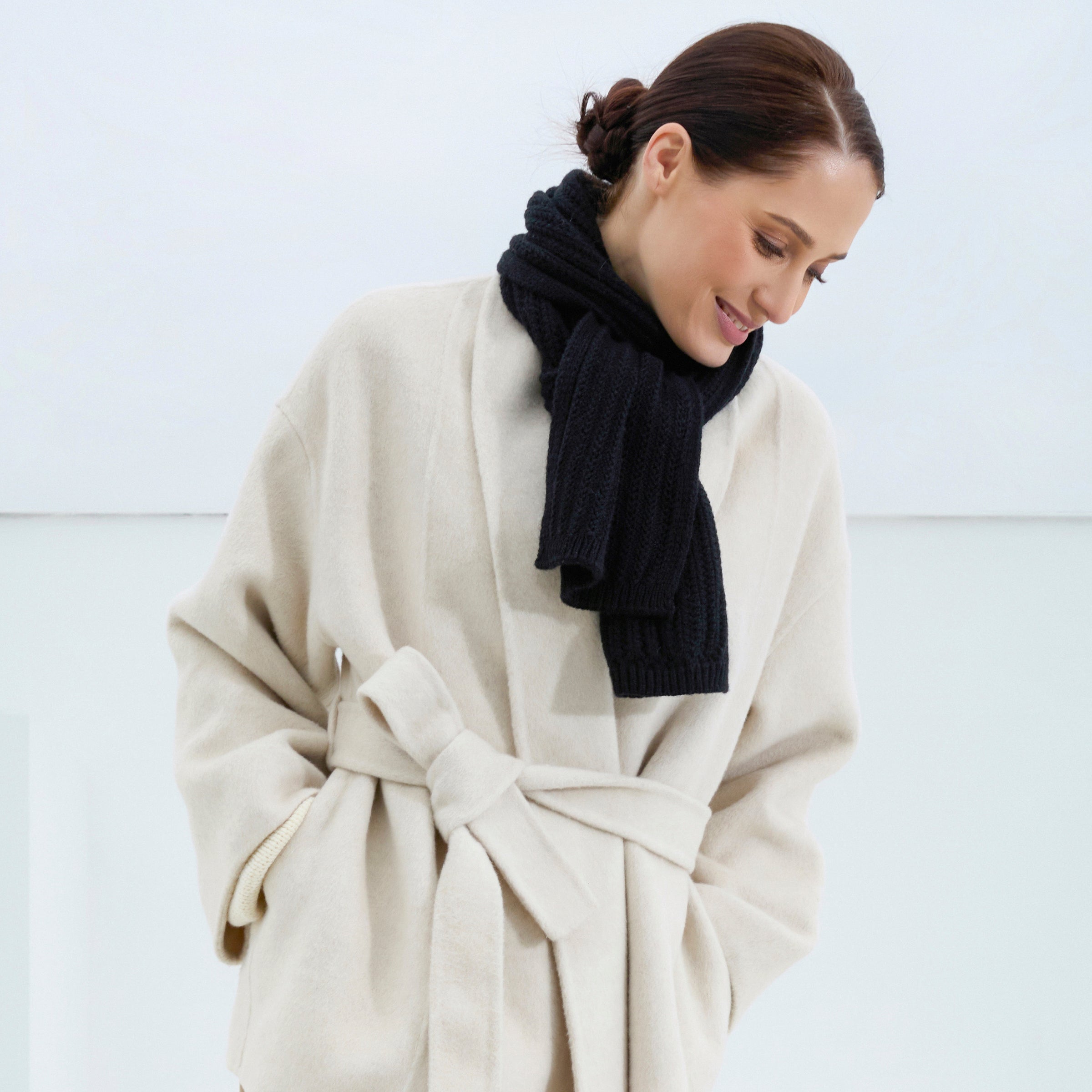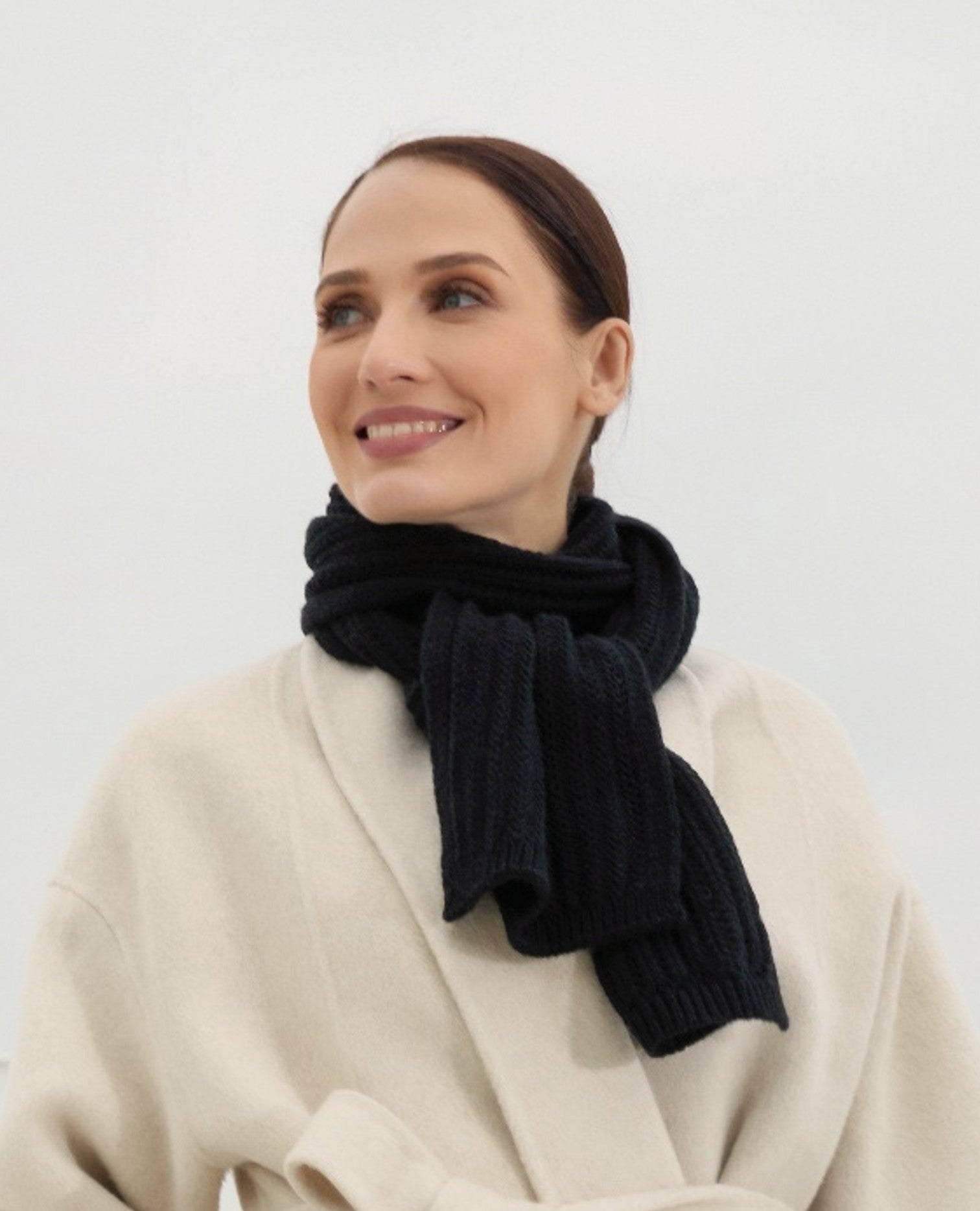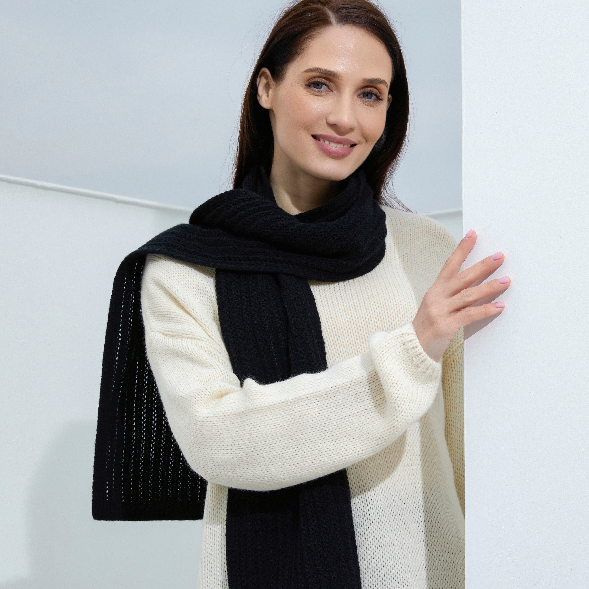 The 180 x 30 cm (71" x 12) silhouette gives you multiple styling options: loop it once for effortless drape, wrap it twice for extra insulation, or let it hang long for a clean, modern look. The ribbed texture adds depth and dimension, making it a beautiful complement to any winter coat or knitwear.
