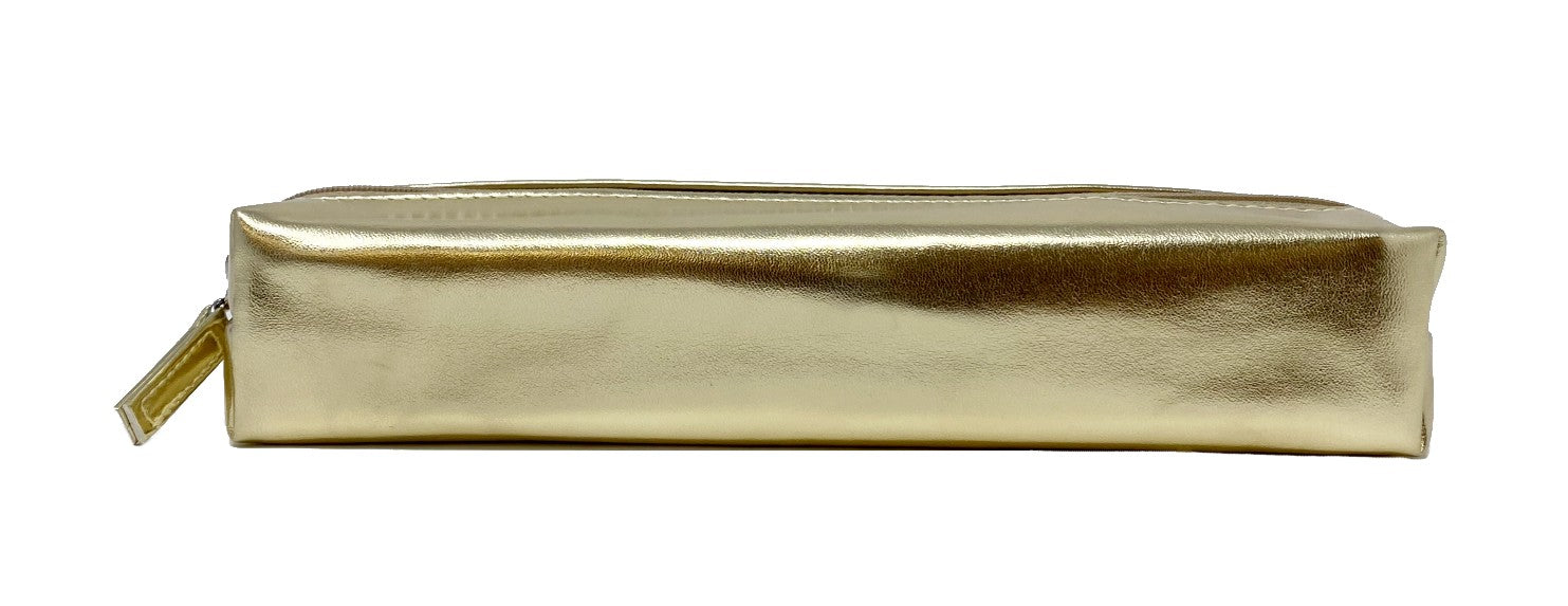 Meet The Golden Bar — a sleek, metallic must-have for anyone who loves a touch of glam. With its slim, structured silhouette and high-shine gold finish, this bag is perfect for storing your slender essentials like brushes, liners, glosses, or pens. Whether tossed into your tote or displayed on your vanity, it adds a pop of polish wherever it goes. The smooth zipper and easy-to-clean faux leather make it both stylish and practical. Lightweight and compact, it’s ideal for everyday use or travel.