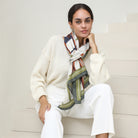 The Leigha brings a modern edge to a timeless accessory. This scarf features a bold geometric print in olive green, navy, tan, and white—an effortless blend of earthy and elevated tones that complement any wardrobe. Lightweight and breathable, it’s the perfect transitional piece for layering through changing seasons.